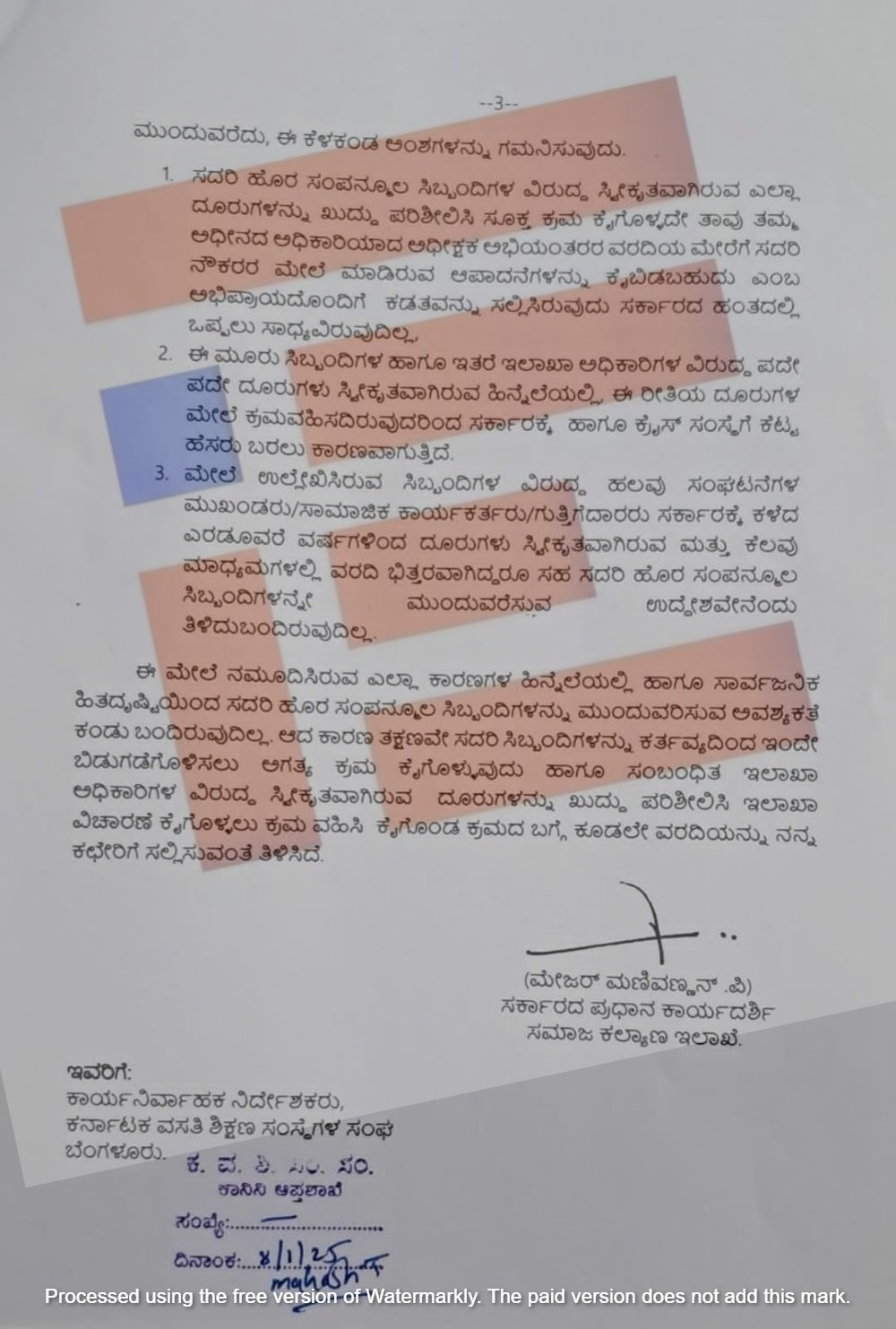 ಈ ಮೂರು ಸಿಬ್ಬಂದಿಗಳ ಹಾಗೂ ಇತರೆ ಇಲಾಖಾ ಅಧಿಕಾರಿಗಳ ವಿರುದ್ಧ ಪದೇ ಪದೇ ದೂರುಗಳು ಸ್ವೀಕೃತವಾಗಿರುವ ಹಿನ್ನೆಲೆಯಲ್ಲಿ ಈ ರೀತಿಯ ದೂರುಗಳ ಮೇಲೆ ಕ್ರಮವಹಿಸದಿರುವುದರಿಂದ ಸರ್ಕಾರಕ್ಕೆ ಹಾಗೂ ಕ್ರೈಸ್ ಸಂಸ್ಥೆಗೆ ಕೆಟ್ಟ ಹೆಸರು ಬರಲು ಕಾರಣವಾಗುತ್ತಿದೆ.