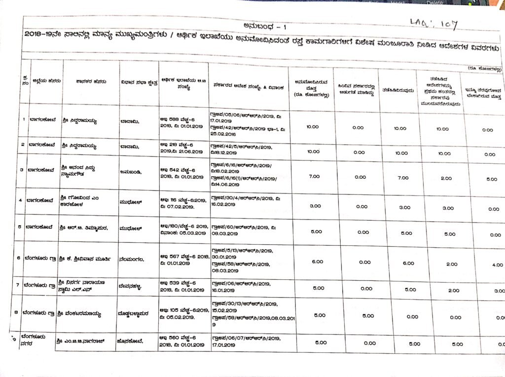 ಅದೇ ರೀತಿ ಸಚಿವ ಎಸ್ ಟಿ ಸೋಮಶೇಖರ್, ಎಂಟಿಬಿ ನಾಗರಾಜ್, ಆನಂದ್ಸಿಂಗ್, ಎನ್ ಮಹೇಶ್, ಕೆ ಸುಧಾಕರ್, ಬಿ ಸಿ ಪಾಟೀಲ್, ಎಚ್ ನಾಗೇಶ್, ನಾರಾಯಣಗೌಡ, ಎಚ್ ವಿಶ್ವನಾಥ್, ಅರಬೈಲು ಶಿವರಾಮ ಹೆಬ್ಬಾರ್ ಪ್ರತಿನಿಧಿಸಿರುವ ಕ್ಷೇತ್ರಗಳಿಗೆ ಅನುಮೋದಿಸಿದ್ದ ಪೂರ್ಣ ಮೊತ್ತವನ್ನು ಬಿಜೆಪಿ ಸರ್ಕಾರ ಬಿಡುಗಡೆ ಮಾಡಿರುವುದು ವಿಶೇಷ.