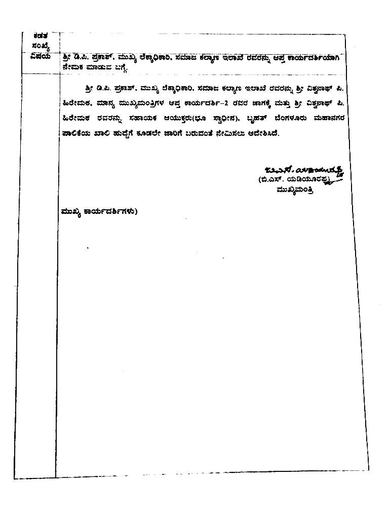 ವಿಶ್ವನಾಥ ಪಿ ಹಿರೇಮಠ ಅವರಿಗಷ್ಟೇ ಸೀಮಿತಗೊಳಿಸಿ ಗ್ರೂಪ್-ಎ (ಕೆಎಎಸ್ ಕಿರಿಯ ಶ್ರೇಣಿ) ಹುದ್ದೆಯನ್ನು ಕರುಣಿಸಿದ್ದ ಸಿಬ್ಬಂದಿ ಮತ್ತು ಆಡಳಿತ ಸುಧಾರಣೆ ಇಲಾಖೆಯು 11 ದಿನದೊಳಗೆ ಮೂರು ಆದೇಶಗಳನ್ನು ಹೊರಡಿಸಿ ಮುಖ್ಯಮಂತ್ರಿ ಯಡಿಯೂರಪ್ಪ ಅವರ ಓಲೈಕೆಗೆ ಇಳಿದಂತಾಗಿದೆ.