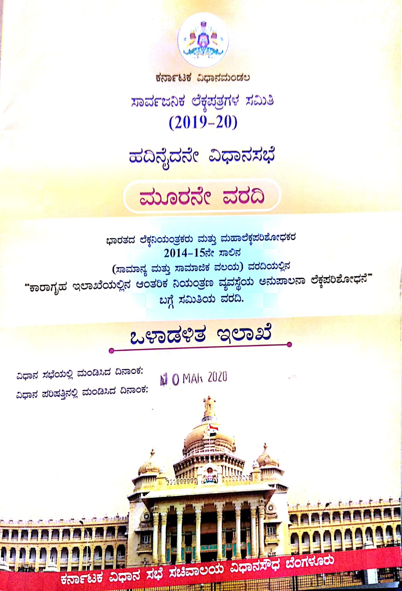 ಕಾರಾಗೃಹ ಇಲಾಖೆಯಲ್ಲಿನ ಆಂತರಿಕ ನಿಯಂತ್ರಣ ವ್ಯವಸ್ಥೆಯ ಕುರಿತಾದ ಅನುಪಾಲನಾ ಲೆಕ್ಕಪರಿಶೋಧನೆ ಕುರಿತು ಸಾರ್ವಜನಿಕ ಲೆಕ್ಕಪತ್ರ ಸಮಿತಿ ಅಧ್ಯಕ್ಷ ಎಚ್‌ ಕೆ ಪಾಟೀಲ್‌ ಅವರು 2020ರ ಮಾರ್ಚ್‌ 10ರಂದು ಉಭಯ ಸದನಗಳಿಗೆ ಮಂಡಿಸಿದ್ದರು.