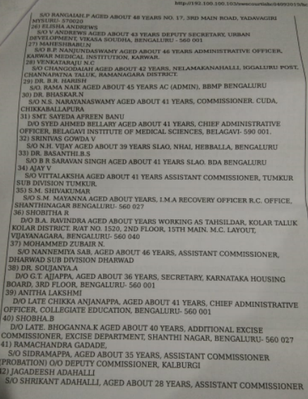 ರಿಟ್ ಅರ್ಜಿ ಸಲ್ಲಿಸಿರುವ ಕೆಎಎಸ್ ಅಧಿಕಾರಿಗಳ ಪಟ್ಟಿ