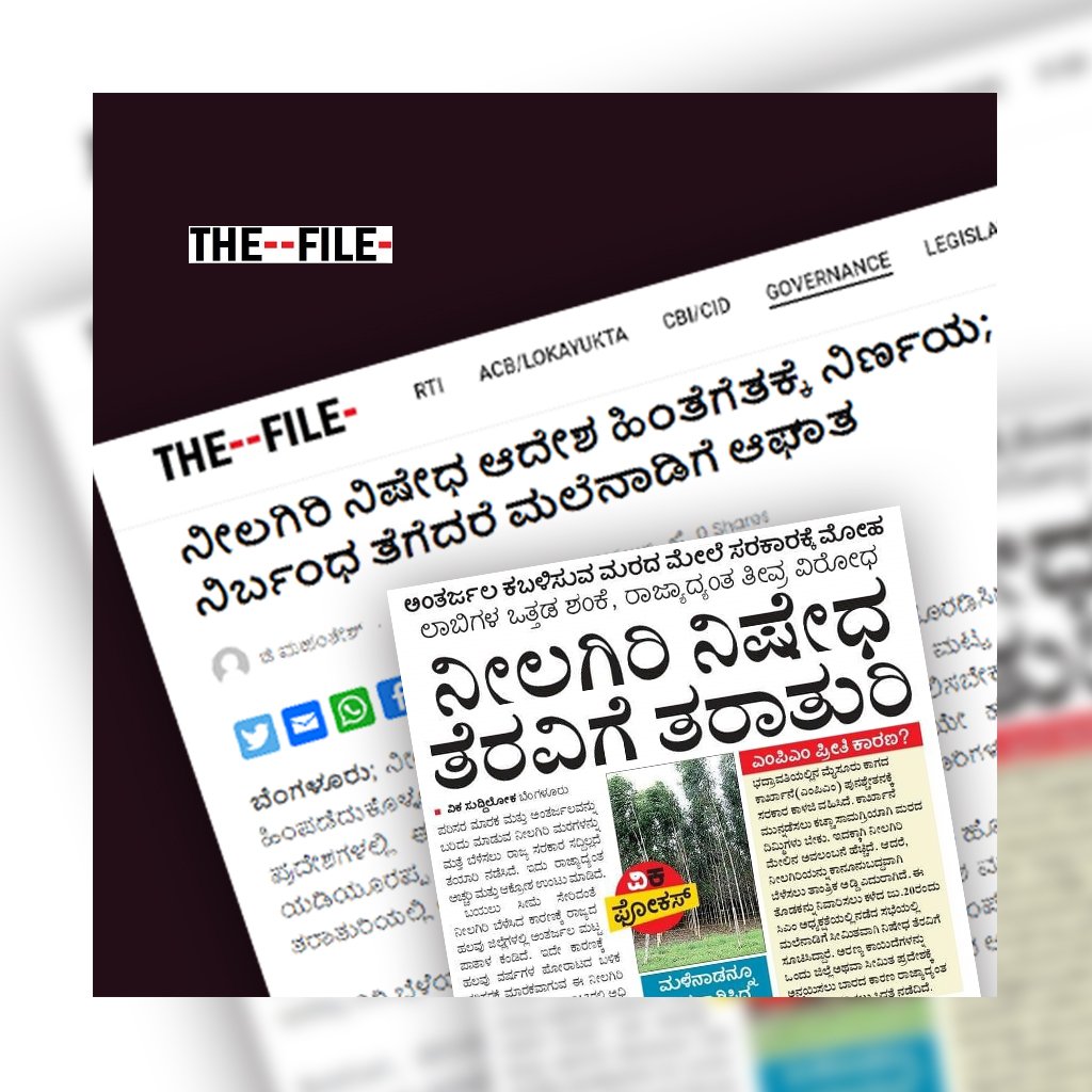 ‘ದಿ ಫೈಲ್’ ವರದಿ ಮಾಡಿದ ಬೆನ್ನಲ್ಲೇ ವಿಜಯಕರ್ನಾಟಕ ಇಂದಿನ ಆವೃತ್ತಿಯಲ್ಲಿ ‘ನೀಲಗಿರಿ ನಿಷೇಧ ತೆರವಿಗೆ ತರಾತುರಿ’ ಶೀರ್ಷಿಕೆಯಡಿಯಲ್ಲಿ ವರದಿ ಪ್ರಕಟಿಸುವ ಮೂಲಕ ನಮ್ಮ ವರದಿಯನ್ನು ಇನ್ನಷ್ಟು ವಿಸ್ತರಿಸುವ ಮೂಲಕ ಸಹಭಾಗಿ ಪತ್ರಿಕೋದ್ಯಮವನ್ನು ಮುಂದುವರೆಸಿದೆ. ಪರಿಸರ ವಿರೋಧಿ ಮತ್ತು ಜನ ವಿರೋಧಿ ನಿರ್ಣಯಗಳನ್ನು ಕೈಗೊಳ್ಳುವ ಸರ್ಕಾರಗಳ ವಿರುದ್ಧ ಸಹಭಾಗಿ ಪತ್ರಿಕೋದ್ಯಮ ಇನ್ನಷ್ಟು ವಿಸ್ತರಣೆಯಾಗಬೇಕು ಎಂಬುದೇ ‘ದಿ ಫೈಲ್’ ಆಶಯ.