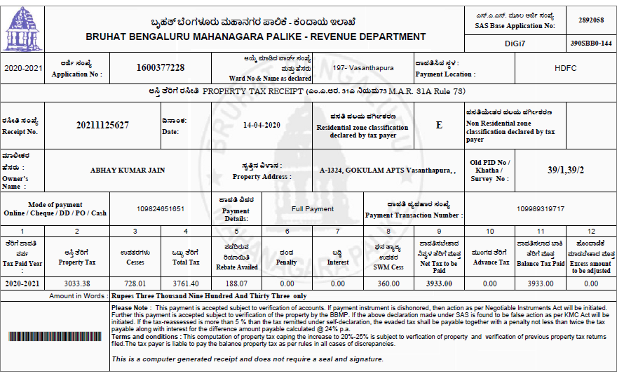 ಜೈನ್ ಅವರ ಹೆಸರಿನಲ್ಲಿಯೇ ಫ್ಲಾಟ್ಗಳು ನೋಂದಣಿಯಾಗಿವೆ ಎಂಬುದನ್ನು ‘ದಿ ಫೈಲ್’ ಖಚಿತಪಡಿಸಿಕೊಂಡಿದೆಯಲ್ಲದೆ ಬೃಹತ್ ಬೆಂಗಳೂರು ಮಹಾನಗರ ಪಾಲಿಕೆಯಲ್ಲಿ ಸ್ವಯಂ ಘೋಷಿತ ಆಸ್ತಿ ತೆರಿಗೆ ಪಾವತಿಸಿರುವ ದಾಖಲೆಗಳನ್ನು ಪಡೆದುಕೊಂಡಿದೆ.