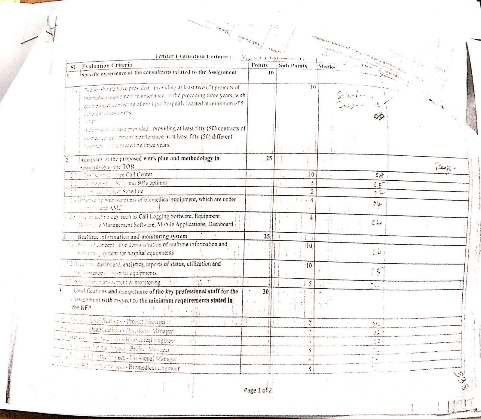 ಹಾಗೆಯೇ ಟಿಬಿಎಸ್ ಇಂಡಿಯಾ ಟೆಲಿಮೆಟಿಕ್ ಮತ್ತು ಬಯೋ ಮೆಡಿಕಲ್ ಸರ್ವಿಸ್ ಪ್ರೈವೈಟ್ ಲಿಮಿಟೆಡ್ನ ತಾಂತ್ರಿಕ ಪ್ರಸ್ತಾವನೆಗೆ 100ಕ್ಕೆ 76 ಅಂಕಗಳನ್ನು ನೀಡಿ ಅರ್ಹವನ್ನಾಗಿಸಿದ್ದರು. ಮರು ಟೆಂಡರ್ ಆಹ್ವಾನ ತಪ್ಪಿಸುವ ಒಂದೇ ಉದ್ದೇಶದಿಂದ 2 ಅರ್ಹ ಬಿಡ್ಗಳನ್ನು ಆಯ್ಕೆ ಮಾಡಲಾಗಿತ್ತು. ಅಚ್ಚರಿಯ ಸಂಗತಿ ಎಂದರೆ ಟಿಬಿಎಸ್ ಇಂಡಿಯಾ ಟೆಲಿಮೆಟಿಕ್ ಬಯೋ ಮೆಡಿಕಲ್ ಸರ್ವಿಸ್ ಪ್ರೈವೈಟ್ ಲಿಮಿಟೆಡ್ ಎಲ್ಲಿಯೂ ಯಾವ ತರಹದಲ್ಲಿಯೂ ಚಕಾರ ಎತ್ತಿರಲಿಲ್ಲ.