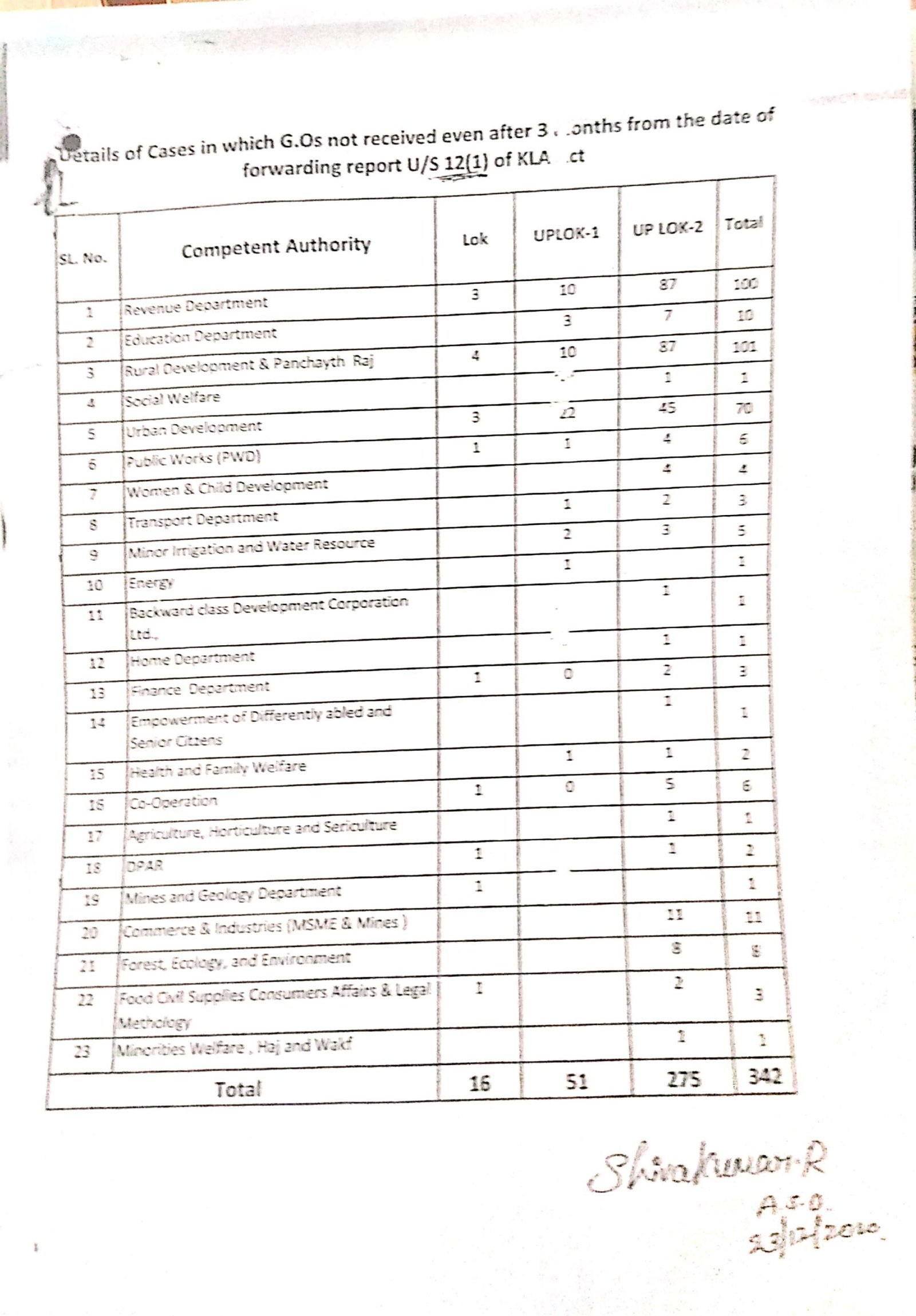 ಅದೇ ರೀತಿ 12(1) ಅನ್ವಯ ಲೋಕಾಯುಕ್ತ ಸಂಸ್ಥೆಯು ಸರ್ಕಾರಕ್ಕೆ ಕಳಿಸಿದ್ದ ಒಟ್ಟು 342 ಪ್ರಕರಣಗಳಲ್ಲೂ ವರದಿಗಳನ್ನು ಸಲ್ಲಿಸಿಲ್ಲ. ಇದರಲ್ಲಿಯೂ ಗ್ರಾಮೀಣಾಭಿವೃದ್ಧಿ ಪಂಚಾಯತ್ರಾಜ್ ಇಲಾಖೆಯು 101, ಕಂದಾಯ ಇಲಾಖೆಯು 100 ಪ್ರಕರಣಗಳಿಗೆ ಸಂಬಂಧಿಸಿದಂತೆ ಕ್ರಮ ಕೈಗೊಂಡಿರುವ ಬಗ್ಗೆ ವರದಿಗಳನ್ನು ಲೋಕಾಯುಕ್ತಕ್ಕೆ ಸಲ್ಲಿಸದಿರುವುದು ಪತ್ರದಿಂದ ತಿಳಿದು ಬಂದಿದೆ.