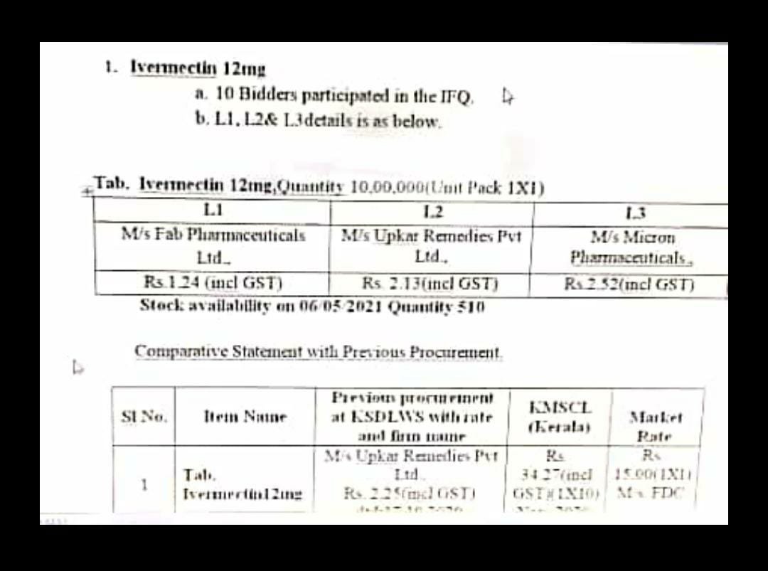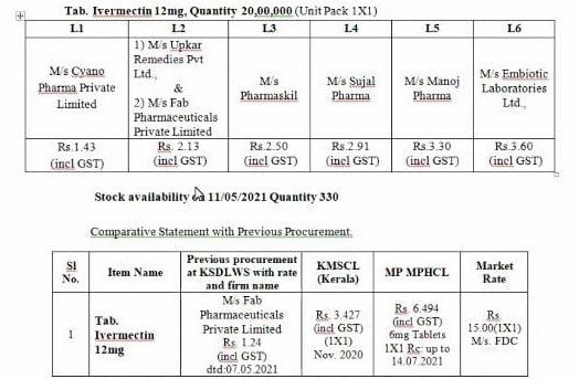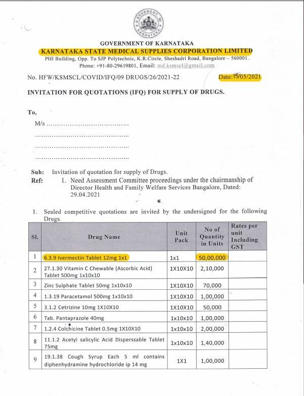ಈ ಪತ್ರ ಬರೆದ ನಂತರವೂ ಕರ್ನಾಟಕ ವೈದ್ಯಕೀಯ ಸರಬರಾಜು ನಿಗಮವು 2021ರ ಮೇ 15ರಂದು 50 ಲಕ್ಷ ಪ್ರಮಾಣದ ಐವರ್ಮೆಕ್ಟಿನ್ ಔಷಧ ಖರೀದಿಗೆ ದರಪಟ್ಟಿ ಆಹ್ವಾನಿಸಿದೆ. ಅಲ್ಲದೆ 2021ರ ಏಪ್ರಿಲ್ 20ರಂದು 10,000, ಏಪ್ರಿಲ್ 27ರಂದು 10,00,000, ಮೇ 10ರಂದು 25,00, 000 ಪ್ರಮಾಣದಲ್ಲಿ ಈ ಔಷಧವನ್ನು ಖರೀದಿಸಲು ದರಪಟ್ಟಿ ಆಹ್ವಾನಿಸಿರುವುದು ತಿಳಿದು ಬಂದಿದೆ.