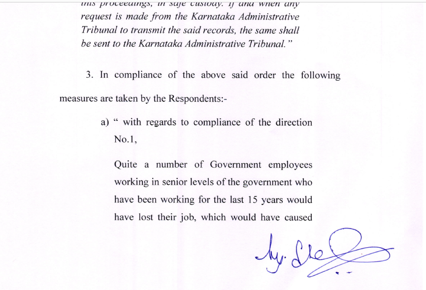 ಅದೇ ರೀತಿ 1998, 99 ಮತ್ತು 2004ನೇ ಬ್ಯಾಚ್‌ ನೇಮಕಾತಿಗೆ ಸಂಬಂಧಿಸಿದಂತೆ ಹೈಕೋರ್ಟ್‌ ನ್ಯಾಯಮೂರ್ತಿ ಎನ್‌ ಕುಮಾರ್‌ ಅವರ ನೇತೃತ್ವದ ಪೀಠವು ನೀಡಿದ್ದ ಮೊದಲನೇ ನಿರ್ದೇಶನವನ್ನು ಪಾಲಿಸಿದಲ್ಲಿ ಕಳೆದ 15 ವರ್ಷಗಳಿಂದ ಸರ್ಕಾರದ ಮಟ್ಟದಲ್ಲಿ ಸೇವೆ ಸಲ್ಲಿಸುತ್ತಿರುವ ಹಿರಿಯ ಅಧಿಕಾರಿಗಳಿಗೆ ಅನ್ಯಾಯವಾಗುತ್ತದೆ. ಅಲ್ಲದೆ ಆಡಳಿತದ ಮೇಲೆ ಕೆಟ್ಟ ಪರಿಣಾಮ ಬೀರುತ್ತದೆ ಎಂದು ರಾಜ್ಯ ಸರ್ಕಾರವು ಅಕ್ರಮ ಫಲಾನುಭವಿಗಳು ಎಂಬ ಆರೋಪಕ್ಕೆ ಒಳಗಾಗಿರುವ ಅಭ್ಯರ್ಥಿಗಳ ರಕ್ಷಣೆಗೆ ಧಾವಿಸಿದೆ.