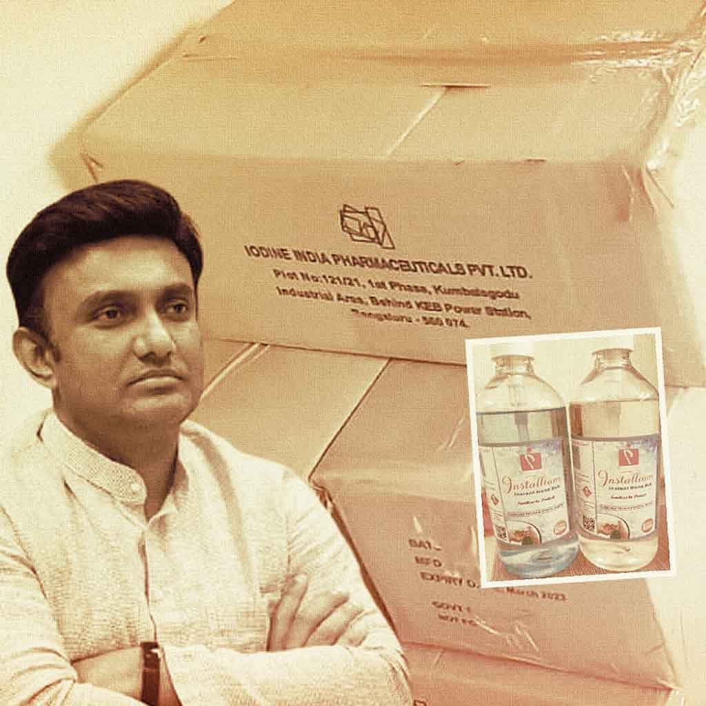 ಅಂದಾಜು 8 ಕೋಟಿ ರು. ಮೊತ್ತದಲ್ಲಿ 1.15 ಲಕ್ಷ ಸ್ಯಾನಿಟೈಸರ್ ಬಾಟಲ್ (500 ಎಂ ಎಲ್) ಖರೀದಿಗೆ ಕರ್ನಾಟಕ ವೈದ್ಯಕೀಯ ಸರಬರಾಜು ನಿಗಮವು 2021ರ ಏಪ್ರಿಲ್ 7ರಂದು ಟೆಂಡರ್ ಕರೆದಿತ್ತು. ಟೆಂಡರ್ನಲ್ಲಿ ಭಾಗವಹಿಸಲು ಏಪ್ರಿಲ್ 24 ಕಡೆ ದಿನವಾಗಿತ್ತು. ಈ ಟೆಂಡರ್ನಲ್ಲಿ ಅಯೋಡಿನ್ ಫಾರ್ಮಾಸ್ಯುಟಿಕಲ್ಸ್ ಕೂಡ ಭಾಗವಹಿಸಿ ವಾರ್ಷಿಕ ವಹಿವಾಟಿನ ದಾಖಲೆಗಳನ್ನು ಲಗತ್ತಿಸಿತ್ತು ಎಂದು ತಿಳಿದು ಬಂದಿದೆ. ಆದರೆ ಟೆಂಡರ್ನಲ್ಲಿ ಭಾಗವಹಿಸಲು ನಿಗದಿಪಡಿಸಿದ್ದ ಕೊನೆ ದಿನಾಂಕದಂದೇ ಟೆಂಡರ್ ರದ್ದುಗೊಂಡಿತ್ತು.