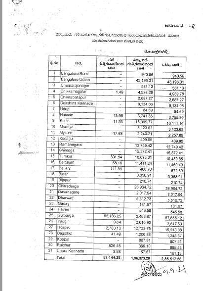 ಬೆಂಗಳೂರು ನಗರ ಜಿಲ್ಲೆ- 431.96 ಕೋಟಿ