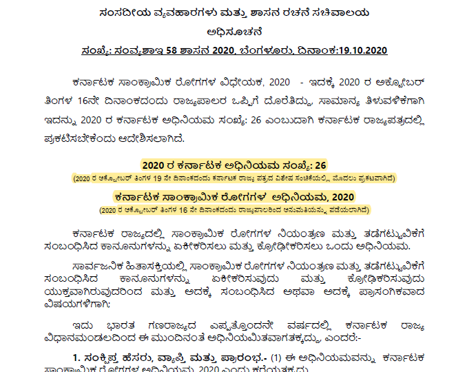 ಕೋವಿಡ್ ಮಾರ್ಗಸೂಚಿಗಳನ್ನು ಉಲ್ಲಂಘಿಸಿ ತಪ್ಪೆಸಗಿರುವವರಿಗೆ ಕರ್ನಾಟಕ ಸಾಂಕ್ರಾಮಿಕ ರೋಗಗಳ ಅಧಿನಿಯಮ 2020ರ ಕಲಂ 5 ರಡಿಯಲ್ಲಿ ಜೈಲು ಶಿಕ್ಷೆ ವಿಧಿಸಲು ಅವಕಾಶವಿದೆ. ಹೀಗಾಗಿಯೇ ಚುನಾಯಿತ ಜನಪ್ರತಿನಿಧಿಗಳ ಒತ್ತಡಕ್ಕೆ ಮಣಿದಿದ್ದ ಸರ್ಕಾರವು ಈ ಅಧಿನಿಯಮವನ್ನು ಪರಿಷ್ಕೃತಗೊಳಿಸಿ ಅವರನ್ನು ಜೈಲು ಶಿಕ್ಷೆಯಿಂದ ಪಾರು ಮಾಡಿತ್ತು. ಆದರೀಗ ಜನಾಧಿಕಾರ ಸಂಘರ್ಷ ಪರಿಷತ್ ಇದನ್ನು ಕಾನೂನಿನ ಚೌಕಟ್ಟಿನಡಿಯಲ್ಲಿ ಪ್ರಕರಣವನ್ನು ಮುಂದುವರೆಸಲು ಸಜ್ಜಾಗಿದೆ.