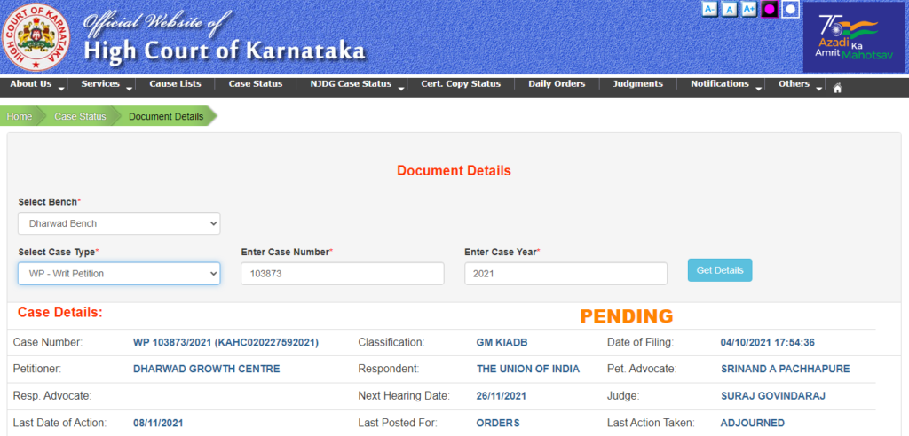 ಕೆಐಎಡಿಬಿ ಮಾಡಿರುವ ಈ ಹಂಚಿಕೆಯನ್ನು ಪ್ರಶ್ನಿಸಿ ಧಾರವಾಡ ಗ್ರೋತ್ ಸೆಂಟರ್ ಸಂಸ್ಥೆಯು ಹೈಕೋರ್ಟ್ನ ಧಾರವಾಡದ ವಿಭಾಗೀಯ ಪೀಠದಲ್ಲಿ ಸಾರ್ವಜನಿಕ ಹಿತಾಸಕ್ತಿ ಅರ್ಜಿ ದಾಖಲಿಸಿತ್ತು. ಅರ್ಜಿ ವಿಚಾರಣೆಯನ್ನು ಕೈಗೆತ್ತಿಕೊಂಡಿರುವ ಪೀಠವು ವಿಚಾರಣೆಯನ್ನು 2021ರ ಡಿಸೆಂಬರ್ 3ಕ್ಕೆ ಮುಂದೂಡಿದೆ.