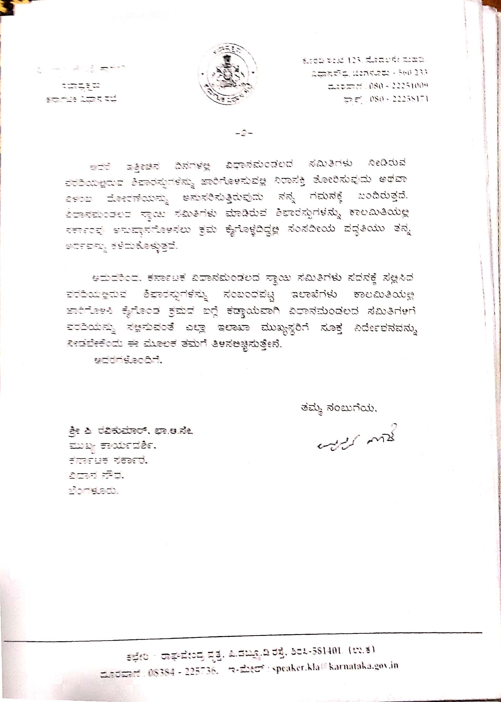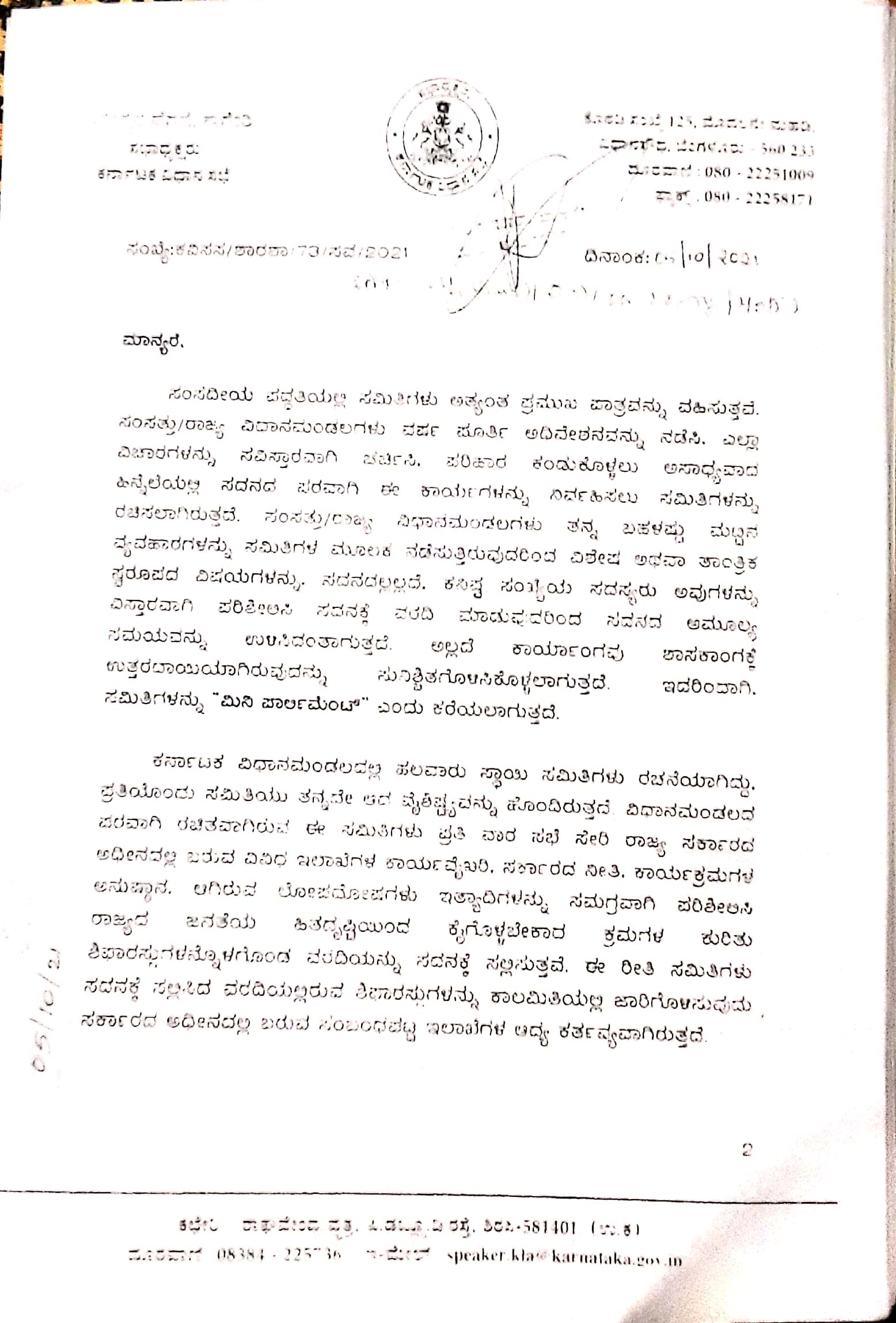 ಸ್ಪೀಕರ್‌ ಬರೆದಿರುವ ಪತ್ರದಲ್ಲೇನಿದೆ?