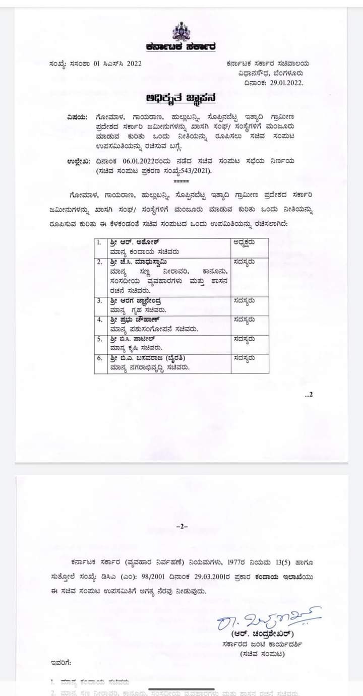 ಕಂದಾಯ ಸಚಿವ ಆರ್ ಅಶೋಕ್ ಅಧ್ಯಕ್ಷತೆಯಲ್ಲಿ ಸಚಿವ ಸಂಪುಟದ ಉಪ ಸಮಿತಿ ರಚಿಸಿರುವ ಸರ್ಕಾರವು ಕಳೆದ ಮೂರು ತಿಂಗಳಿಂದಲೂ ಪರಿಶೀಲನೆ ಹಂತದಲ್ಲಿರುವ ರಾಷ್ಟ್ರೋತ್ಥಾನ ಪರಿಷತ್ಗೆ ಗೋಮಾಳ ಹಂಚಿಕೆ ಮಾಡುವ ಪ್ರಸ್ತಾವನೆಯ ಕಡತವನ್ನು ವಿಲೇವಾರಿ ಮಾಡುವ ಉದ್ದೇಶದಿಂದಲೇ ನೀತಿ ರೂಪಿಸಲು ಹೊರಟಿರುವುದು ಮೇಲ್ನೋಟಕ್ಕೆ ಕಂಡು ಬಂದಿದೆ.