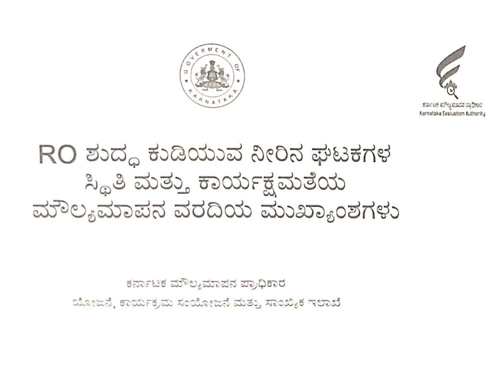 ರಾಜ್ಯದಲ್ಲಿ ಸ್ಥಾಪಿಸಲಾಗಿರುವ ಶುದ್ಧ ಕುಡಿಯುವ ನೀರಿನ ಘಟಕಗಳ ಕಾರ್ಯಕ್ಷಮತೆ ಕುರಿತು ಕರ್ನಾಟಕ ಮೌಲ್ಯಮಾಪನ ಪ್ರಾಧಿಕಾರವು ಈ ಕುರಿತು ವಿಶ್ವೇಶ್ವರಯ್ಯ ತಾಂತ್ರಿಕ ವಿಶ್ವವಿದ್ಯಾಲಯದ ಎನ್ಎಸ್ಎಸ್ ಘಟಕದ ಇಂಜಿನಿಯಿರಿಂಗ್ ವಿದ್ಯಾರ್ಥಿಗಳ ಮೂಲಕ 831 ಘಟಕಗಳ 17 ಜಿಲ್ಲೆಗಳಲ್ಲಿ ಅಧ್ಯಯನ ನಡೆಸಲಾಗಿದೆ.