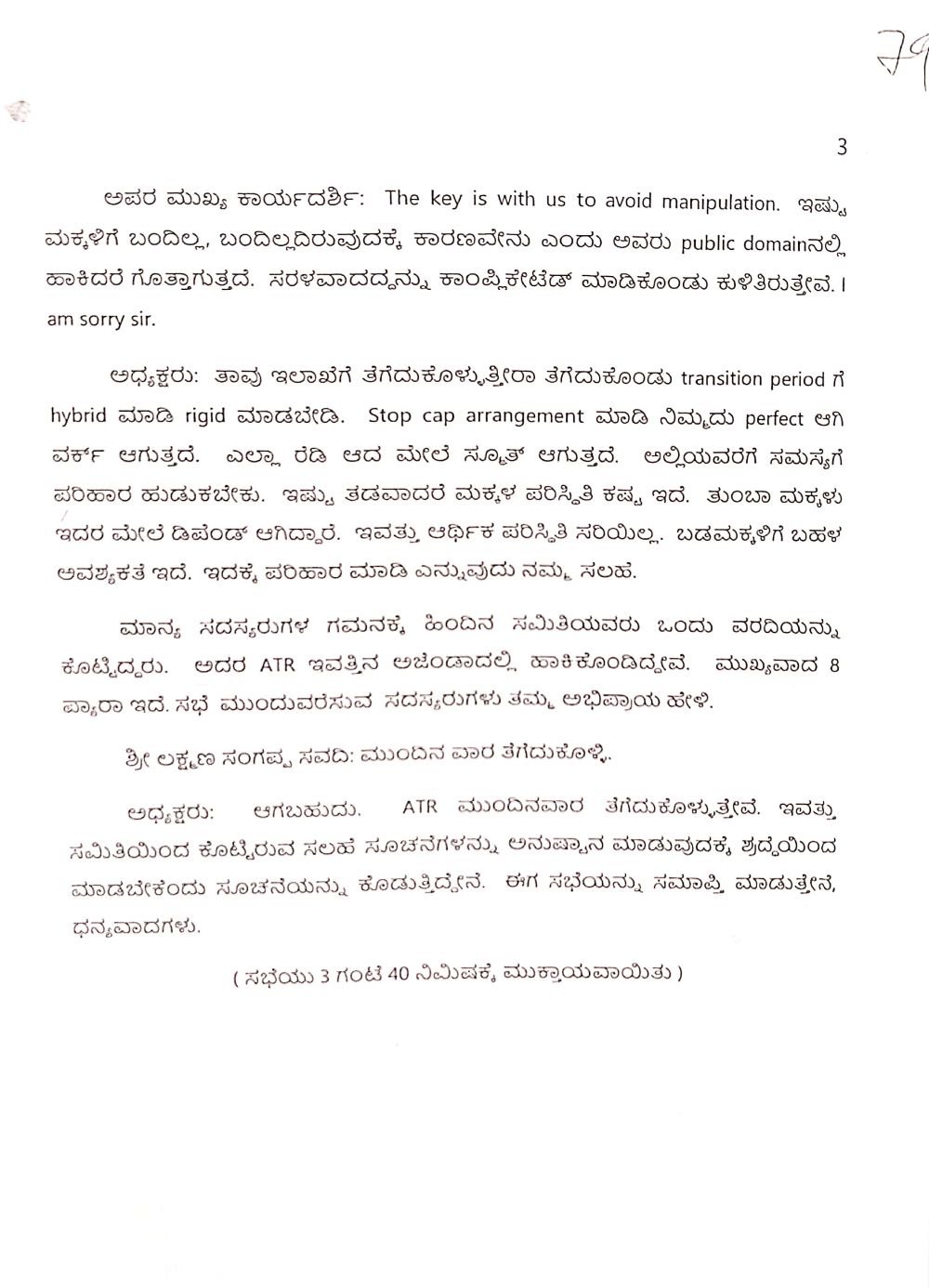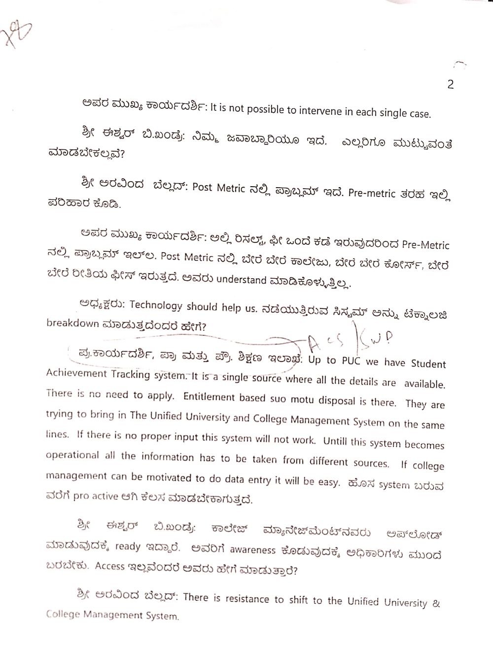 ಇದಕ್ಕೆ ಹೆಚ್ಚುವರಿ ಮುಖ್ಯ ಕಾರ್ಯದರ್ಶಿ ‘The key is with us to avoid manipulation. ಇಷ್ಟು ಮಕ್ಕಳಿಗೆ ಬಂದಿಲ್ಲ. ಬಂದಿಲ್ಲದಿರುವುದಕ್ಕೆ ಕಾರಣವೇನು ಎಂದ ಅವರು public domainನಲ್ಲಿ ಹಾಕಿದರೆ ಗೊತ್ತಾಗುತ್ತದೆ. ಸರಳವಾದದ್ದನ್ನು ಕಾಂಪ್ಲಿಕೇಟೆಡ್‌ ಮಾಡಿಕೊಂಡು ಕುಳಿತಿರುತ್ತೇವೆ. I am sorry sir,’ ಎಂದು ಉತ್ತರಿಸುವ ಮೂಲಕ ಅಸಹಾಯಕತೆ ಪ್ರದರ್ಶಿಸಿರುವುದು ನಡವಳಿಯಿಂದ ಗೊತ್ತಾಗಿದೆ.
