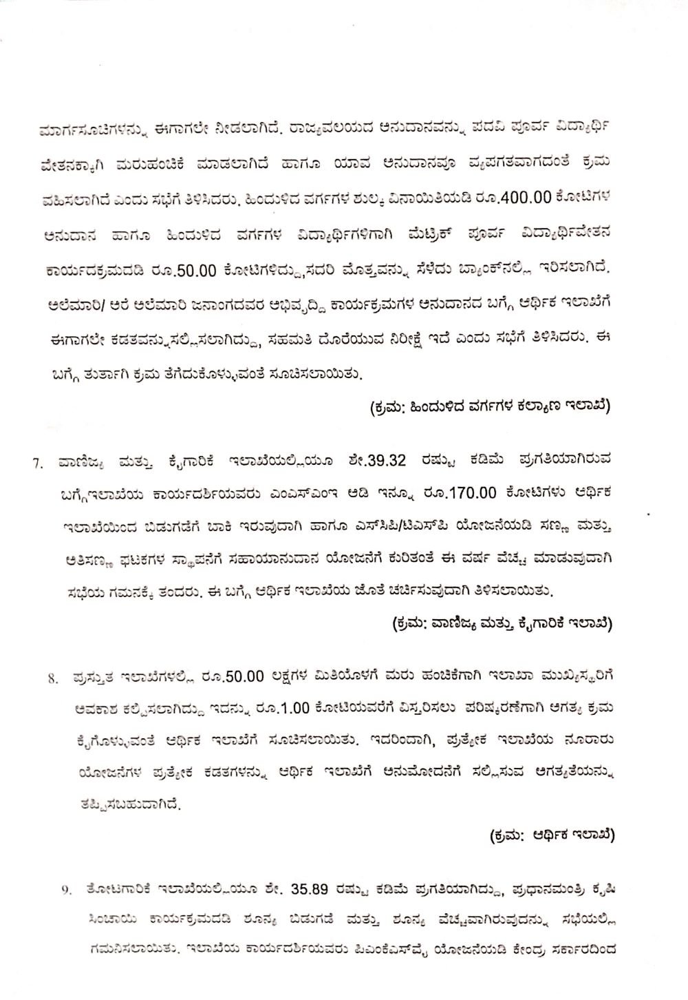 ಈ ಇಲಾಖೆಗೆ ರಾಜ್ಯವಲಯದಿಂದ ನೀಡಲಾಗಿದ್ದ ಅನುದಾನವನ್ನು ಪದವಿ ಪೂರ್ವ ವಿದ್ಯಾರ್ಥಿ ವೇತನಕ್ಕೆ ಮರು ಹಂಚಿಕೆ ಮಾಡಲಾಗಿದೆ. ಹಿಂದುಳಿದ ವರ್ಗಗಳ ಶುಲ್ಕ ವಿನಾಯಿತಿಯಡಿ 400.00 ಕೋಟಿ ರು. ಅನುದಾನ ಹಾಗೂ ಹಿಂದುಳಿದ ವರ್ಗಗಳ ವಿದ್ಯಾರ್ಥಿಗಳಿಗಾಗಿ ಮೆಟ್ರಿಕ್ ಪೂರ್ವ ವಿದ್ಯಾರ್ಥಿ ವೇತನ ಕಾರ್ಯಕ್ರಮದಡಿ 50.00 ಕೋಟಿ ರು.ಗಳನ್ನು ಬ್ಯಾಂಕ್ನಲ್ಲಿ ಇರಿಸಿರುವುದು ತಿಳಿದು ಬಂದಿದೆ.