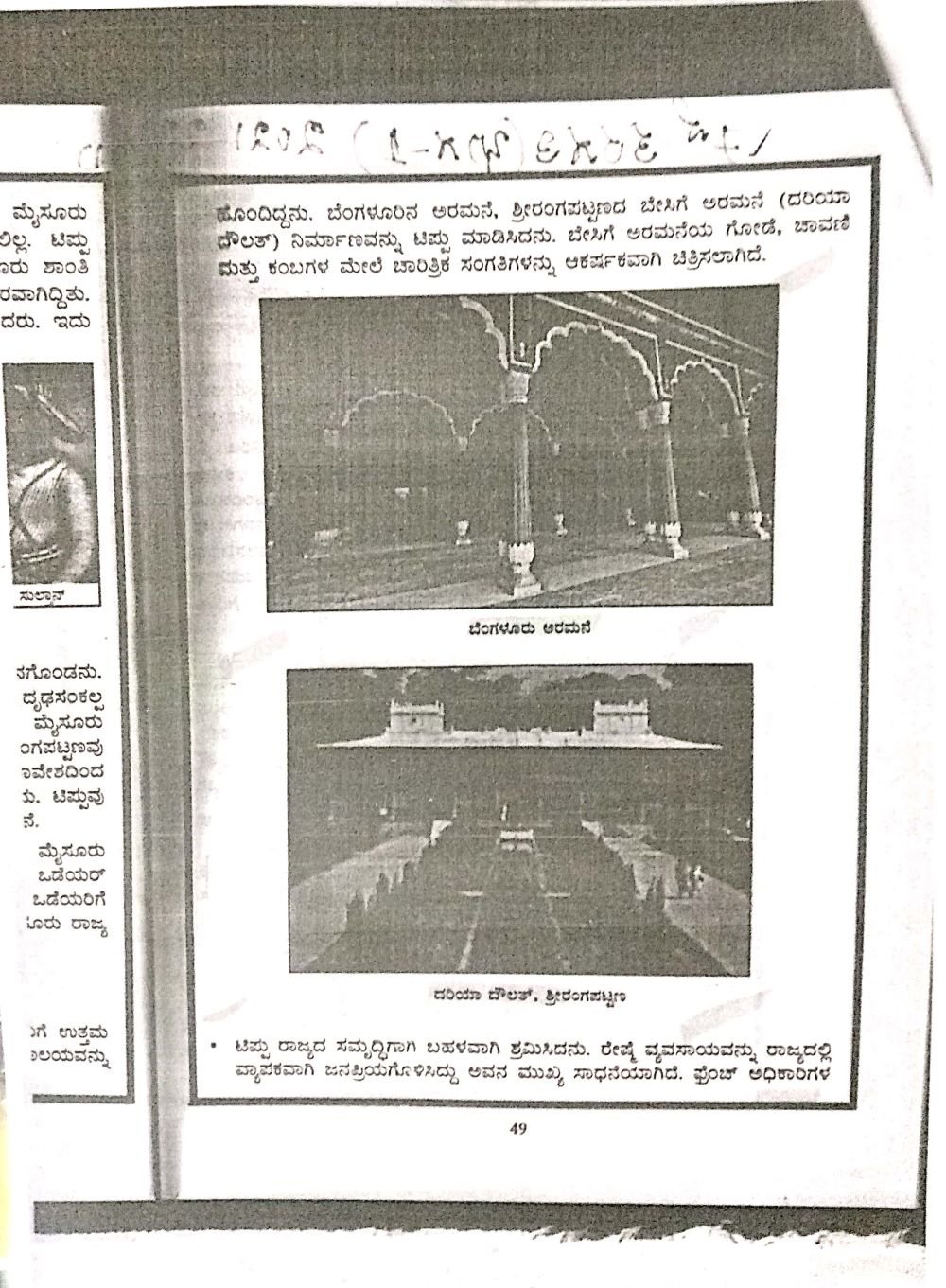 ಬೆಂಗಳೂರು ಅರಮನೆ ಚಿತ್ರವಿದ್ದ ಪುಟದ ಪ್ರತಿ