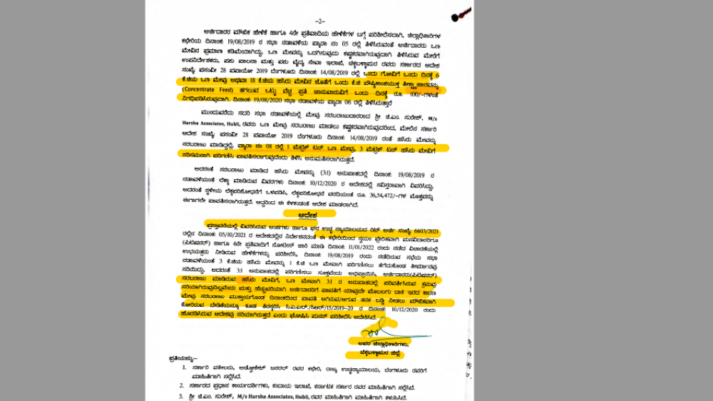 ಕಮಿಷನ್ ಮತ್ತು ಲಂಚ ಕೊಡದಿದ್ದಕ್ಕೆ ಅಧಿಕಾರಿಗಳ ಭ್ರಷ್ಟಕೂಟವು ಹಸಿರು ಮೇವನ್ನು ಒಣ ಮೇವನ್ನಾಗಿ ಪರಿವರ್ತಿಸಿದ್ದಾರೆ. ಇದನ್ನು ಪ್ರಶ್ನಿಸಿದ್ದ ಜಿ ಎಂ ಸುರೇಶ್ ಅವರು ನ್ಯಾಯಾಲಯದ ಮೆಟ್ಟಿಲೇರಿ ರಿಟ್ ಅರ್ಜಿಯನ್ನು ದಾಖಲಿಸಿದ್ದರು. ಇದಾದ ನಂತರ ಅಧಿಕಾರಿಗಳ ಭ್ರಷ್ಟಕೂಟವು ನ್ಯಾಯಾಲಯದ ಛೀಮಾರಿ ಹಾಕಿಸಿಕೊಳ್ಳುವ ಸಂದರ್ಭದಲ್ಲಿ ಒಟ್ಟು 70 ಲಕ್ಷ ರು. ಪೈಕಿ 36 ಲಕ್ಷ ರು.ಗಳನ್ನು ಅರ್ಜಿದಾರ ಜಿ ಎಂ ಸುರೇಶ್ ಅವರಿಗೆ ಪಾವತಿಸಿದ್ದಾರೆ. ಆ ಸಂದರ್ಭದಲ್ಲಿ ಎಲ್ಲಿಯೂ ಹಸಿರು ಮೇವನ್ನು ಒಣ ಮೇವನ್ನಾಗಿ ಪರಿವರ್ತಿಸುವ ಬಗ್ಗೆ ಪ್ರಮಾಣಪತ್ರದಲ್ಲಿ ಉಲ್ಲೇಖಿಸಿಲ್ಲ.