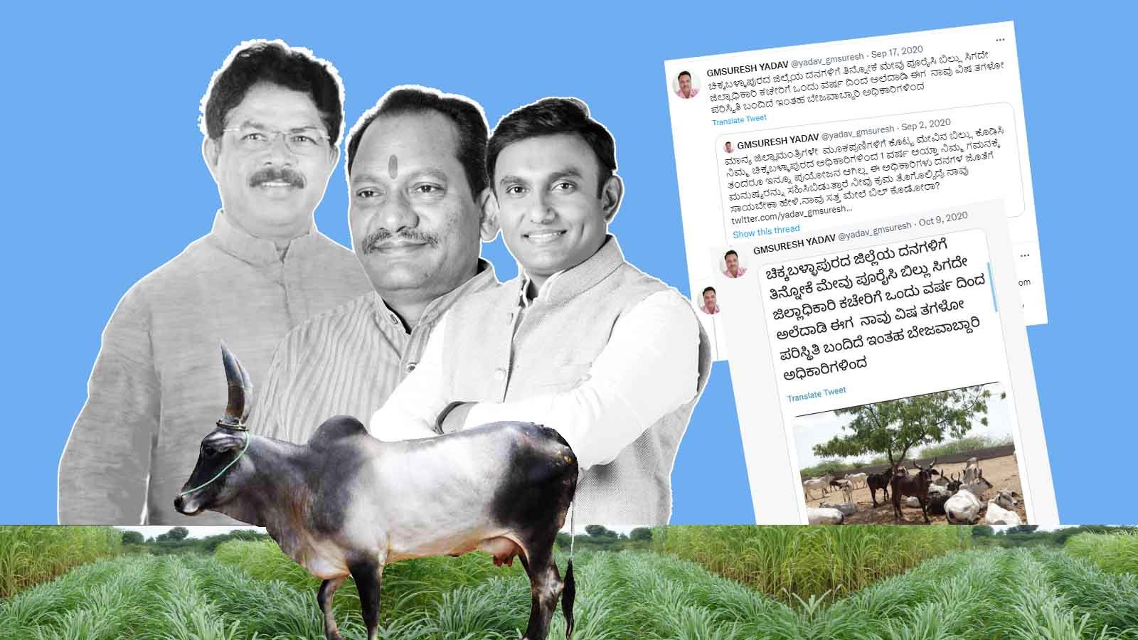 ಪ್ರಧಾನಿ ಕಚೇರಿಗೆ ದೂರು ಸಲ್ಲಿಸುವ ಮುನ್ನವೇ ಈ ಸಂಬಂಧ 2020ರಿಂದಲೂ ಬಾಕಿ ಹಣಕ್ಕಾಗಿ ಜಿಲ್ಲಾಧಿಕಾರಿಗಳ ಕಚೇರಿ ಮೆಟ್ಟಿಲಿಳಿದು ಬಸವಳಿದು ಹೋಗಿರುವ ಜಿ ಎಂ ಸುರೇಶ್ ಎಂಬುವರು ‘ ಚಿಕ್ಕಬಳ್ಳಾಪುರದ ಜಿಲ್ಲೆಯ ದನಗಳಿಗೆ ತಿನ್ನೋಕೆ ಮೇವು ಪೂರೈಸಿ ಬಿಲ್ ಸಿಗದೇ ಜಿಲ್ಲಾಧಿಕಾರಿ ಕಚೇರಿಗೆ ಒಂದು ವರ್ಷದಿಂದ ಅಲೆದಾಡಿ ಈಗ ನಾವು ವಿಷ ತಗಳೋ ಪರಿಸ್ಥಿತಿ ಬಂದಿದೆ ಇಂತಹ ಬೇಜವಾಬ್ದಾರಿ ಅಧಿಕಾರಗಿಳಿಂದ,’ ಎಂದು ಟ್ವೀಟ್ ಕೂಡ ಮಾಡಿದ್ದರು. ಆದರೂ ಅಧಿಕಾರಿಗಳು ಈ ಬಗ್ಗೆ ನ್ಯಾಯಯುತವಾಗಿ ನಡೆದುಕೊಂಡಿಲ್ಲ ಎಂಬುದು ಗೊತ್ತಾಗಿದೆ.