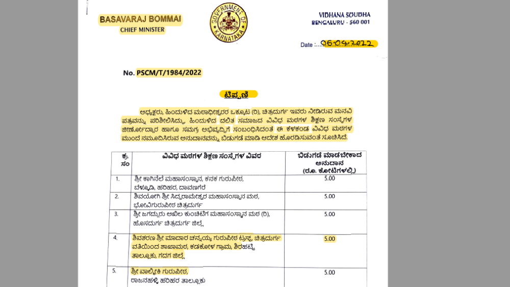 ಬೆಂಗಳೂರು ನಗರ ಜಿಲ್ಲೆಯ ಯಲಹಂಕ ತಾಲೂಕಿನ ಹೆಸರಘಟ್ಟ ಹೋಬಳಿಯ ಹುರುಳಿಚಿಕ್ಕನಹಳ್ಳಿ ಗ್ರಾಮದಲ್ಲಿ 9.32 ಎಕರೆ ವಿಸ್ತೀರ್ಣದ ಗೋಮಾಳವನ್ನು ರಾಷ್ಟ್ರೋತ್ಥಾನ ಪರಿಷತ್ಗೆ ಮಂಜೂರು ಮಾಡಿ ಆದೇಶ ಹೊರಡಿಸಿರುವ ಬೆನ್ನಲ್ಲೇ ಶಿವಶರಣ ಮಾದಾರ ಚೆನ್ನಯ್ಯ ಗುರುಪೀಠ ಟ್ರಸ್ಟ್ಗೆ 81.23 ಎಕರೆ ಗೋಮಾಳವನ್ನು ಮಂಜೂರು ಮಾಡಿರುವುದು ಮುನ್ನೆಲೆಗೆ ಬಂದಿದೆ.