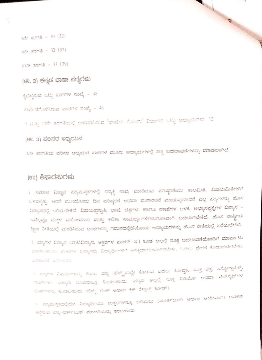 ವಿಷಯ ಪ್ರಸ್ತುತಿ, ಭಾಷೆ, ಚಿತ್ರಗಳು, ಹಾಗೂ ನಕಾಶೆಗಳ ಬಳಕೆ, ಅಭ್ಯಾಸಪ್ರಶ್ನೆಗಳ ವಿನ್ಯಾಸ ಇವೆಲ್ಲವೂ ಮಕ್ಕಳ ವಯೋಮಾನ ಮತ್ತು ಕಲಿಕಾ ಸಾಮರ್ಥ್ಯಗಳಿಗನುಗುಣವಾಗಿ ಬದಲಾಗಬೇಕಿದೆ. ಹೊಸ ರಾಷ್ಟ್ರೀಯ ಶಿಕ್ಷಣ ನೀತಿಯಲ್ಲಿ ಮಂಡಿಸಿರುವ ಅಂಶಗಳನ್ನು ಗಮನದಲ್ಲಿಟ್ಟುಕೊಂಡು ಅಧ್ಯಾಯಗಳನ್ನು ಹೊಸ ರೀತಿಯಲ್ಲಿ ಬರೆಯಬೇಕಿದೆ,’ ಎಂದು ಸಮಿತಿಯು ವರದಿಯಲ್ಲಿ ಶಿಫಾರಸ್ಸು ಮಾಡಲಾಗಿದೆ.