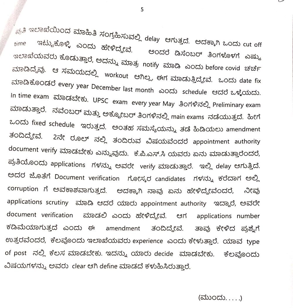 ‘ಕೆಪಿಎಸ್ಸಿಯವರು ಏನು ಮಾಡುತ್ತಾರೆಂದರೆ ಪ್ರತಿಯೊಂದು ಅಪ್ಲಿಕೇಶನ್ಗಳನ್ನು ಅವರೇ ವೆರಿಫೈ ಮಾಡುತ್ತಾರೆ. ಇಲ್ಲಿ ಡಿಲೇ ಆಗುತ್ತಿದೆ. ಅದರ ಜತೆಗೆ ಡಾಕ್ಯುಮೆಂಟ್ ವೆರಿಫಿಕೇಷನ್ಗೋಸ್ಕರ ಕ್ಯಾಂಡಿಡೇಟ್ಸ್ಗಳನ್ನು ಕರೆದಾಗ ಕರೆಪ್ಷನ್ಗೆ ಅವಕಾಶವಾಗುತ್ತದೆ,’ ಎಂದು ಹೇಳಿರುವುದು ನಡವಳಿಯಲ್ಲಿ ದಾಖಲಾಗಿದೆ.