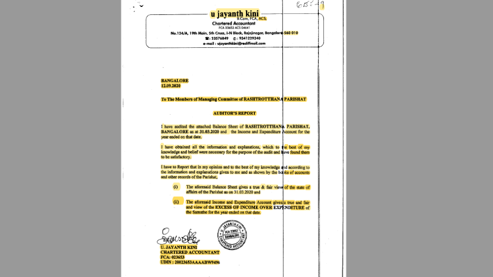 ರಾಷ್ಟ್ರೋತ್ಥಾನ ಪರಿಷತ್ಗೆ ಗೋಮಾಳ ಜಮೀನು ಮಂಜೂರಾತಿ ಸಂಬಂಧದ 388 ಪುಟಗಳನ್ನೊಳಗೊಂಡ ಸಮಗ್ರ ಕಡತವನ್ನು ‘ದಿ ಫೈಲ್’ ಆರ್ಟಿಐ ಅಡಿಯಲ್ಲಿ ಪಡೆದಿದೆ. ಇದರಲ್ಲಿ ಕಳೆದ 5 ವರ್ಷದ ಆಡಿಟ್ ವರದಿಯೂ ಇದೆ.