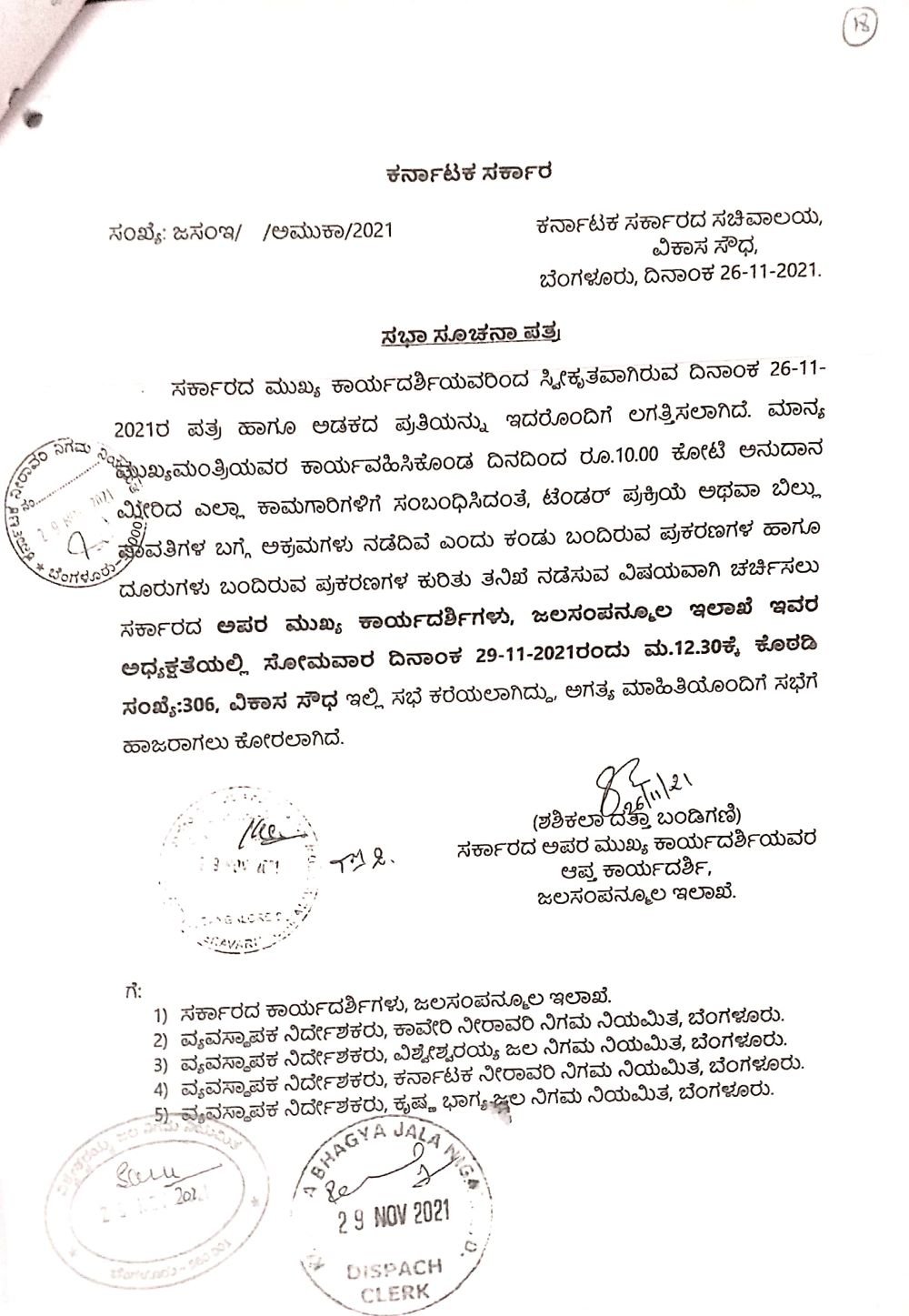 ಈ ಸೂಚನೆ ಮೇರೆಗೆ ಮುಖ್ಯ ಕಾರ್ಯದರ್ಶಿ ರವಿಕುಮಾರ್‌ ಅವರು ಜಲಸಂಪನ್ಮೂಲ ಇಲಾಖೆಯ ಸರ್ಕಾರದ ಹೆಚ್ಚುವರಿ ಮುಖ್ಯ ಕಾರ್ಯದರ್ಶಿ ರಾಕೇಶ್‌ಸಿಂಗ್‌ಗೆ ಸೂಚಿಸಿದ್ದರು.