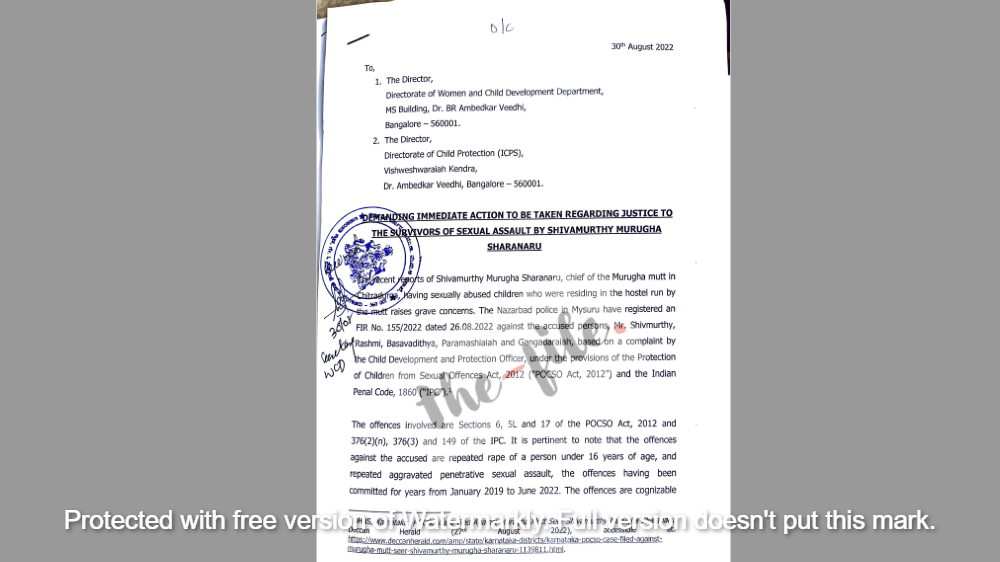 ‘ಮೈನರ್ ಮಕ್ಕಳ ಮೇಲೆ ತೀವ್ರ ರೀತಿಯ ಲೈಂಗಿಕ ದೌರ್ಜನ್ಯ ಎಸಗಿರುವ ಗಂಭೀರ ಆರೋಪ ಅವರ ಮೇಲೆ ಇದ್ದಾಗ್ಯೂ ಸಹ ಅವರನ್ನು ಬಂಧಿಸಲು ಪೊಲೀಸರು ವಿಫಲರಾಗಿರುವುದು ನ್ಯಾಯದ ಅತಿಕೆಟ್ಟ ಅವಹೇಳನವಾಗಿದೆ. ಈ ಅಪರಾಧಗಳು ಜಾಮೀನುರಹಿತವಾದ ಸಂಜ್ಞೇಯ ಅಪರಾಧಗಳಾಗಿವೆ; ಮಕ್ಕಳು ಬಹಳ ಕಾಲ ಆರೋಪಿಗಳ ಅಧೀನದಲ್ಲಿದ್ದು ಅವರಿಂದ ಬೆದರಿಕೆಗೆ ಒಳಗಾಗುವ ಸ್ಥಿತಿಯಲ್ಲಿದ್ದಾರೆ, ಆರೋಪಿಗಳು ಸಾಕ್ಷ್ಯಗಳನ್ನು ನಾಶ ಮಾಡಬಲ್ಲ ಪ್ರಭಾವಿಗಳಾಗಿದ್ದಾರೆ,’ ಎಂದು ಮನವಿಯಲ್ಲಿ ಸಂಘಟನೆಗಳು ಪ್ರಸ್ತಾಪಿಸಿವೆ.