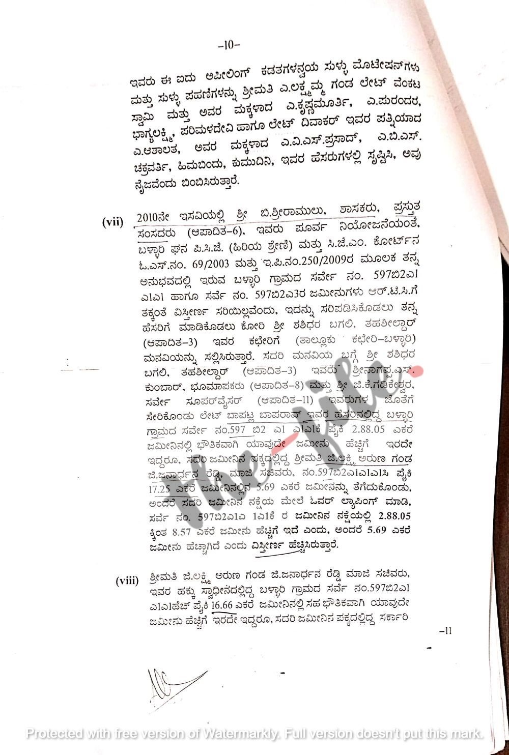 ಪ್ರಕರಣಕ್ಕೆ ಸಂಬಂಧಿಸಿದಂತೆ ಲೋಕಾಯುಕ್ತ ಪೊಲೀಸರು ನ್ಯಾಯಾಲಯಕ್ಕೆ 6 ವರ್ಷದ ಬಳಿಕ ದೋಷಾರೋಪಣೆ ಪಟ್ಟಿ ಸಲ್ಲಿಸಿರುವ ಬೆನ್ನಲ್ಲೇ ಅಂತಿಮ ತನಿಖಾ ವರದಿಯಲ್ಲಿ ಮಾಜಿ ಸಚಿವ ಜಿ ಜನಾರ್ದನ ರೆಡ್ಡಿ ಅವರ ಪತ್ನಿ ಲಕ್ಷ್ಮಿ ಅರುಣ ಅವರ ಹೆಸರಿನಲ್ಲಿಯೂ ಜಮೀನು ವಿಸ್ತೀರ್ಣವನ್ನು ಹೇಗೆ ಹೆಚ್ಚಳ ಮಾಡಲಾಗಿತ್ತು ಎಂಬುದರ ಕುರಿತು ವಿವರಿಸಲಾಗಿದೆ.