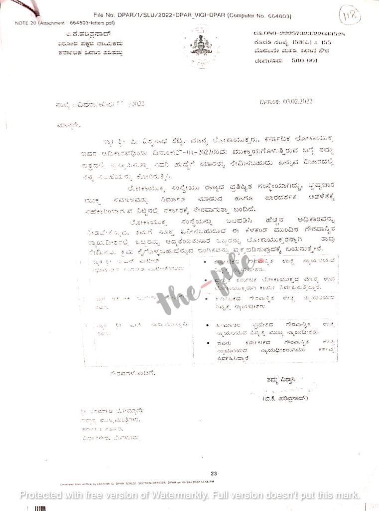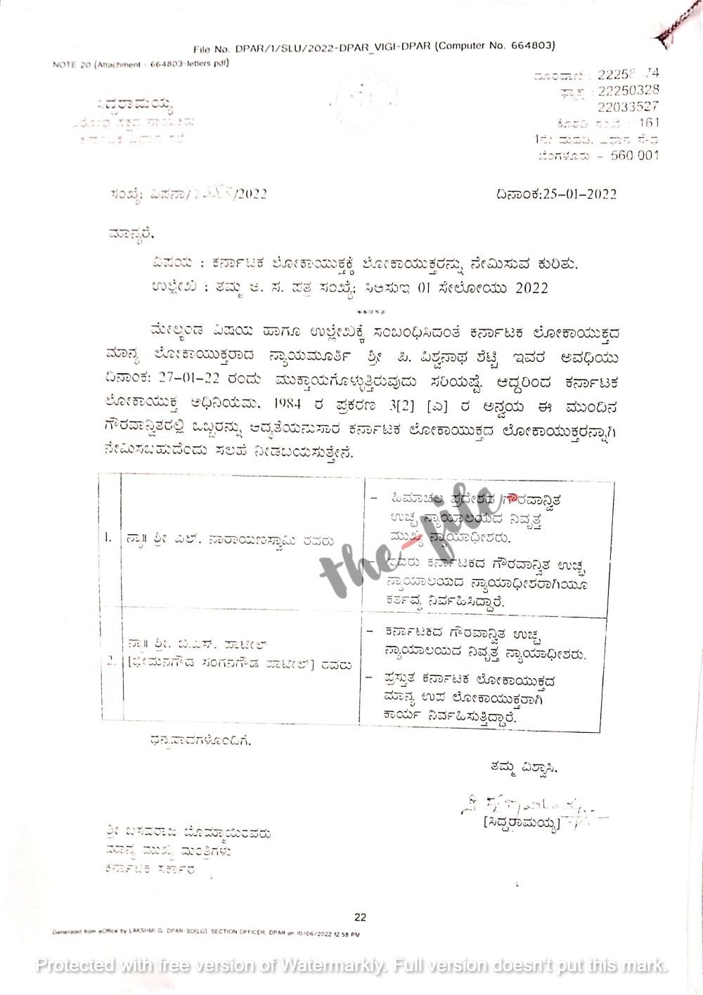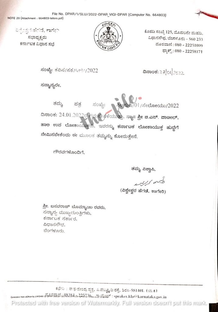 ನೂತನ ಲೋಕಾಯುಕ್ತರ ನೇಮಕಾತಿ ಪ್ರಕ್ರಿಯೆಯಲ್ಲಿ ವಿಧಾನಸಭೆ, ವಿಧಾನಪರಿಷತ್ ಪ್ರತಿಪಕ್ಷ ನಾಯಕರು, ಸಭಾಪತಿ, ಸಭಾಧ್ಯಕ್ಷ ಮತ್ತು ಹೈಕೋರ್ಟ್ನ ಮುಖ್ಯ ನ್ಯಾಯಾಧೀಶರು ಲಿಂಗಾಯತ ಸಮುದಾಯಕ್ಕೆ ಸೇರಿದ ಬಿ ಎಸ್ ಪಾಟೀಲ್ ಅವರನ್ನು ನೇಮಿಸಲು ಸಾಮೂಹಿಕವಾಗಿ ಶಿಫಾರಸ್ಸು ಮಾಡಿದ್ದರು ಎಂಬುದು ‘ದಿ ಫೈಲ್’ ಪಡೆದಿರುವ ಆರ್ಟಿಐ ದಾಖಲೆಗಳಿಂದ ಬಹಿರಂಗವಾಗಿದೆ.
