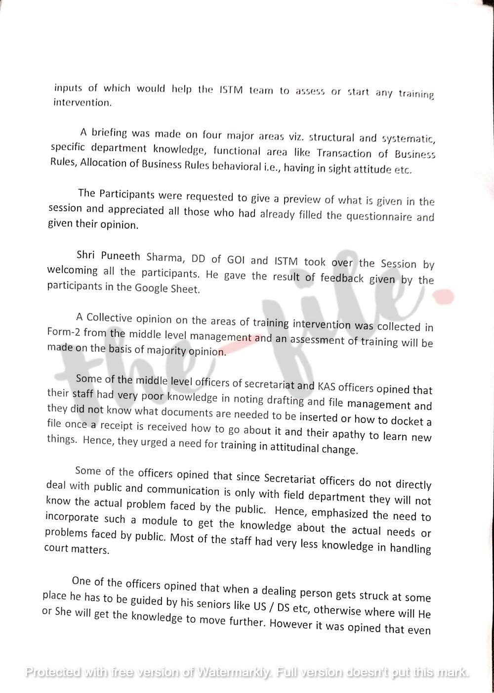 ಅಷ್ಟೇ ಅಲ್ಲ, ಮಧ್ಯಮ ಹಂತದ ಅಧಿಕಾರಿ, ನೌಕರರಿಗೆ ಕನಿಷ್ಠ ಜ್ಞಾನವೂ ಇಲ್ಲವಾಗಿದೆ. ಟಿಪ್ಪಣಿ ಬರೆಯುವುದು ಮತ್ತು ಕಡತಗಳ ನಿರ್ವಹಣೆ, ದಾಖಲಾತಿಗಳ ಅಧ್ಯಯನ ಕುರಿತು ಅವರಿಗೆ ಮಾಹಿತಿಯ ಅಗಾಧ ಕೊರತೆ ಇದೆ. ಹೀಗಾಗಿ ತರಬೇತಿ ನೀಡುವ ಅನಿವಾರ್ಯತೆ ಇದೆ ಎಂಬ ಅಭಿಪ್ರಾಯವನ್ನು ಸಚಿವಾಲಯದ ಅಧಿಕಾರಿಗಳು, ಹಲವು ಕೆಎಎಸ್‌ ಅಧಿಕಾರಿಗಳು ಅಭಿಪ್ರಾಯವನ್ನು ವ್ಯಕ್ತಪಡಿಸಿದ್ದಾರೆ.