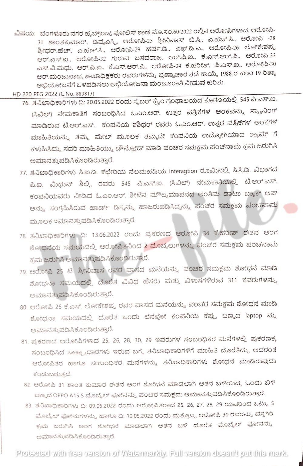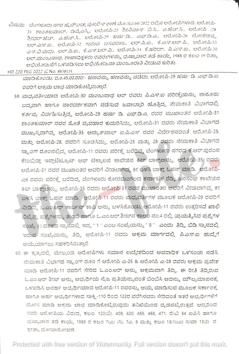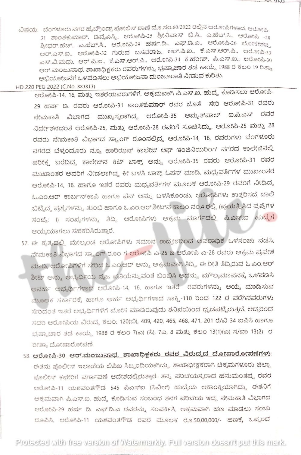31ನೇ ಆರೋಪಿ ಡಿವೈಎಸ್ಪಿ ಶಾಂತಕುಮಾರ್, ಶ್ರೀಧರ್ ಹೆಚ್ (ಆರೋಪಿ 28), ಹರ್ಷ ಡಿ (ಆರೋಪಿ 29) ಇವರ ಸೇವಾ ವಿವರಗಳನ್ನು ದೋಷಾರೋಪಣೆ ಪಟ್ಟಿಯಲ್ಲಿ ಲಗತ್ತಿಸಿರುವ ಸಿಐಡಿ ತನಿಖಾಧಿಕಾರಿಗಳು ಸರ್ಕಾರಿ ನೌಕರರಾದ ಆರೋಪಿ ಟಿ ಸಿ ಶ್ರೀನಿವಾಸ, ಲೋಕೇಶಪ್ಪ, ಆರ್ ಮಂಜುನಾಥ್, ಗುರುವ ಬಸವರಾಜು, ಮಧು ಎಸ್ ವಿ, ಹರೀಶ್ ಕೆ ಅವರ ಸೇವಾ ವಿವರಗಳನ್ನು ದೋಷಾರೋಪಣೆ ಪಟ್ಟಿಯಲ್ಲಿ ಲಗತ್ತಿಸಿಲ್ಲ ಎಂಬುದು ಕಾನೂನು ಇಲಾಖೆಗೆ ಸಲ್ಲಿಸಿರುವ ಮಾಹಿತಿಯಿಂದ ತಿಳಿದು ಬಂದಿದೆ.