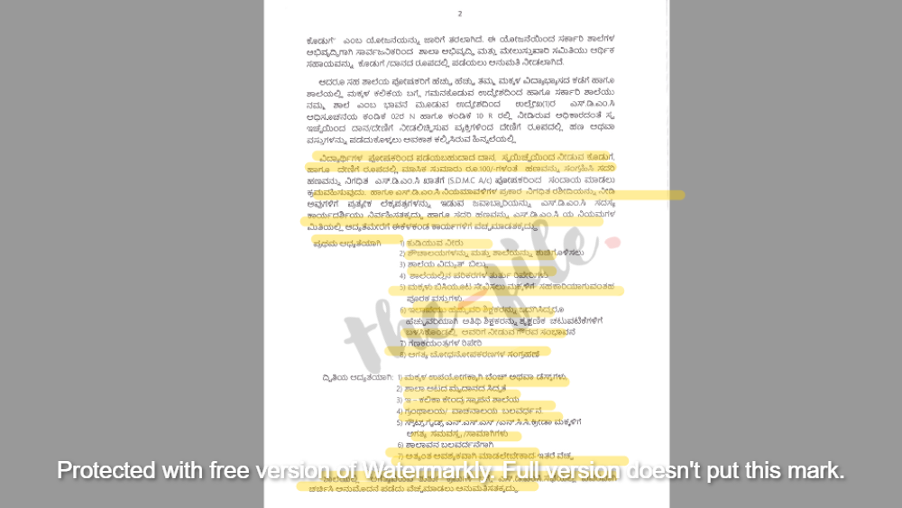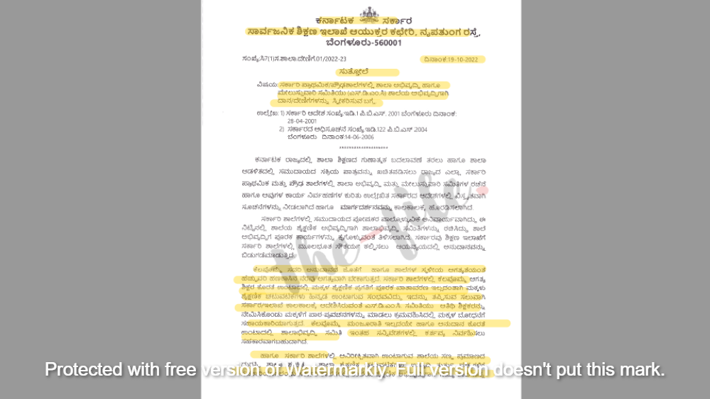 ‘ಯಾವುದೇ ಕಾರಣಕ್ಕೂ ಯಾವುದೇ ಪೋಷಕರಿಂದ ಬಲವಂತವಾಗಿ ಹಣ/ದೇಣಿಗೆ/ದಾನವನ್ನು ಸಂಗ್ರಹಿಸುವುದನ್ನು ನಿರ್ಬಂಧಿಸುತ್ತದೆ. ಆದರೆ ಪೋಷಕರ ಮನವೊಲಿಸಿ ಶಾಲೆಯ ಅಗತ್ಯ ಖರ್ಚು ವೆಚ್ಚಗಳನ್ನು ಮನವರಿಕೆ ಮಾಡಿಕೊಟ್ಟು ಪೋಷಕರು ಸ್ವಯಂ ಪ್ರೇರಿತವಾಗಿ ಎಸ್ಡಿಎಂಸಿ ಖಾತೆಗೆ ಹಣ ನೀಡುವಂತೆ ಮಾಡಬೇಕು,’ ಎಂದೂ ಸುತ್ತೋಲೆಯಲ್ಲಿ ಹೇಳಲಾಗಿದೆ.