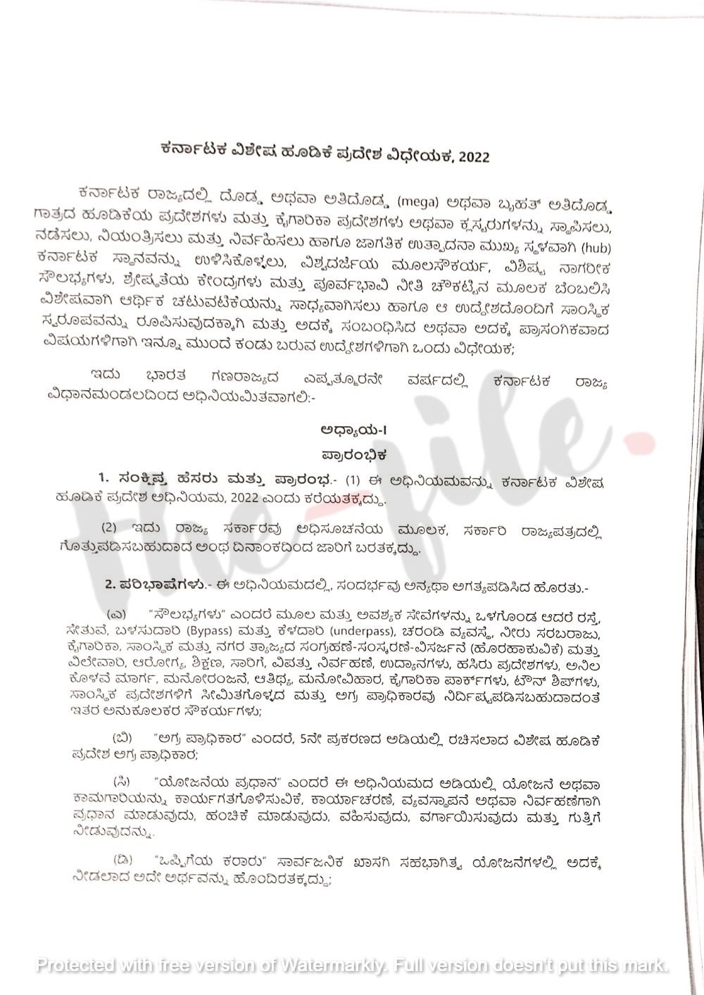 ಜಾಗತಿಕ ಬಂಡವಾಳ ಹೂಡಿಕದಾರರ ಸಮಾವೇಶಕ್ಕೆ ಸಜ್ಜುಗೊಳ್ಳುತ್ತಿರುವ ಬೆನ್ನಲ್ಲೇ ರಾಜ್ಯ ಸರ್ಕಾರವು ಮಂಡಿಸಲು ಉದ್ದೇಶಿಸಿರುವ ಕರ್ನಾಟಕ ವಿಶೇಷ ಹೂಡಿಕೆ ಪ್ರದೇಶ ವಿಧೇಯಕ,2022 ಮಹತ್ವ ಪಡೆದುಕೊಂಡಿದೆ.