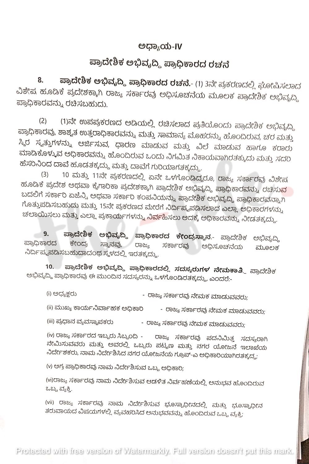 ಸರ್ಕಾರವು ಮಂಡಿಸಲು ಉದ್ದೇಶಿಸಿರುವ ವಿಧೇಯಕದಲ್ಲಿ ಪ್ರಾದೇಶಿಕ ಅಭಿವೃದ್ಧಿ ಪ್ರಾಧಿಕಾರ ರಚನೆ ಕುರಿತು ಪ್ರಸ್ತಾಪಿಸಿದೆ. ಈ ಮೂಲಕ ಶಾಸನ ರಚನೆ ಇಲಾಖೆಯ ಅಭಿಪ್ರಾಯವನ್ನು ಬದಿಗಿರಿಸಿ ಕೆಐಎಡಿಬಿಗೆ ಎದುರಾಗಿ ಮತ್ತೊಂದು ಪ್ರಾಧಿಕಾರ ರಚಿಸಲು ಹೊರಟಿರುವುದು ಮೇಲ್ನೋಟಕ್ಕೆ ಕಂಡು ಬಂದಿದೆ.