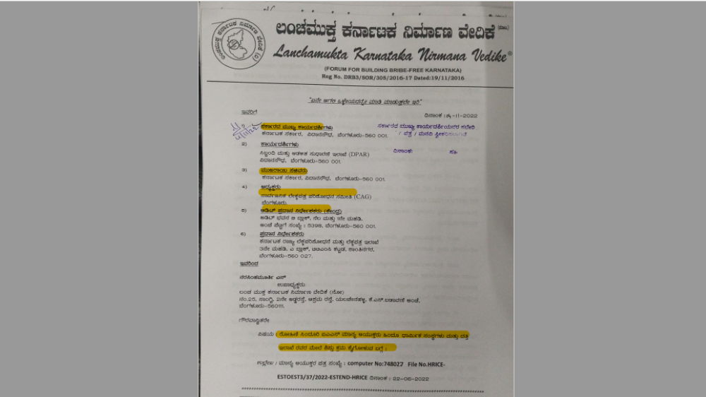 ತುಮಕೂರು ಜಿಲ್ಲೆ ಕುಣಿಗಲ್ ತಾಲೂಕಿನ ಹುಲಿಯೂರು ದುರ್ಗ ಹೋಬಳಿಯ ಹಳೇವೂರಿನ ಹುಲಿಯೂರಮ್ಮ ದೇವಸ್ಥಾನದಲ್ಲಿ ಹಣ ದುರ್ಬಳಕೆ ಪ್ರಕರಣವನ್ನು ಉಲ್ಲೇಖಿಸಿರುವ ಲಂಚಮುಕ್ತ ಕರ್ನಾಟಕ ನಿರ್ಮಾಣ ವೇದಿಕೆಯು ರಾಜ್ಯದ ಹಲವು ದೇಗುಲಗಳಲ್ಲಿಯೂ ಹಣ ದುರ್ಬಳಕೆ ಕುರಿತಂತೆ ವರದಿಗಳಿದ್ದರೂ ರೋಹಿಣಿ ಸಿಂಧೂರಿ ಅವರು ಯಾವುದೇ ಕ್ರಮಕೈಗೊಳ್ಳುತ್ತಿಲ್ಲ ಎಂದು ರಾಜ್ಯ ಸರ್ಕಾರದ ಮುಖ್ಯ ಕಾರ್ಯದರ್ಶಿ, ಮುಜುರಾಯಿ ಸಚಿವರಾದ ಶಶಿಕಲಾ ಜೊಲ್ಲೆ, ಸಾರ್ವಜನಿಕ ಲೆಕ್ಕಪತ್ರ ಸಮಿತಿ ಅಧ್ಯಕ್ಷರು ಸೇರಿದಂತೆ ಹಲವರಿಗೆ 2022ರ ನವೆಂಬರ್ 4ರಂದು ಲಿಖಿತ ದೂರು ಸಲ್ಲಿಸಿದೆ. ಇದರ ಪ್ರತಿಯು ‘ದಿ ಫೈಲ್’ಗೆ ಲಭ್ಯವಾಗಿದೆ.