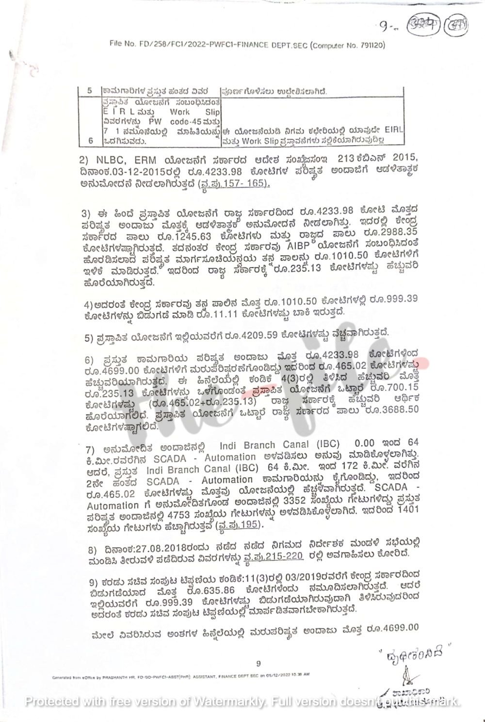 ‘ಪ್ರಸ್ತುತ ಕಾಮಗಾರಿಯ ಪರಿಷ್ಕೃತ ಅಂದಾಜು ಮೊತ್ತ 4,233.98 ಕೋಟಿಗಳಿಂದ 4,699.00 ಕೋಟಿಗಳಿಗೆ ಮರುಪರಿಷ್ಕರಣೆಗೊಂಡಿದ್ದು ಇದರಿಂದ 465 ಕೋಟಿಗಳಷ್ಟು ಹೆಚ್ಚುವರಿಯಾಗಿರುತ್ತದೆ. ಈ ಹಿನ್ನೆಲೆಯಲ್ಲಿ ಹೆಚ್ಚುವರಿ ಮೊತ್ತ 235.13 ಕೋಟಿ (ಕಂಡಿಕೆ 4(3)ರಲ್ಲಿ ಇದ್ದಂತೆ) ಗಳನ್ನು ಒಳಗೊಂಡಂತೆ ಪ್ರಸ್ತಾಪಿತ ಯೋಜನೆಗೆ ಒಟ್ಟಾರೆ 700.15 ಕೋಟಿಗಳಷ್ಟು ರಾಜ್ಯ ಸರ್ಕಾರಕ್ಕೆ ಹೆಚ್ಚುವರಿ ಆರ್ಥಿಕ ಹೊರೆಯಾಗಲಿದೆ.