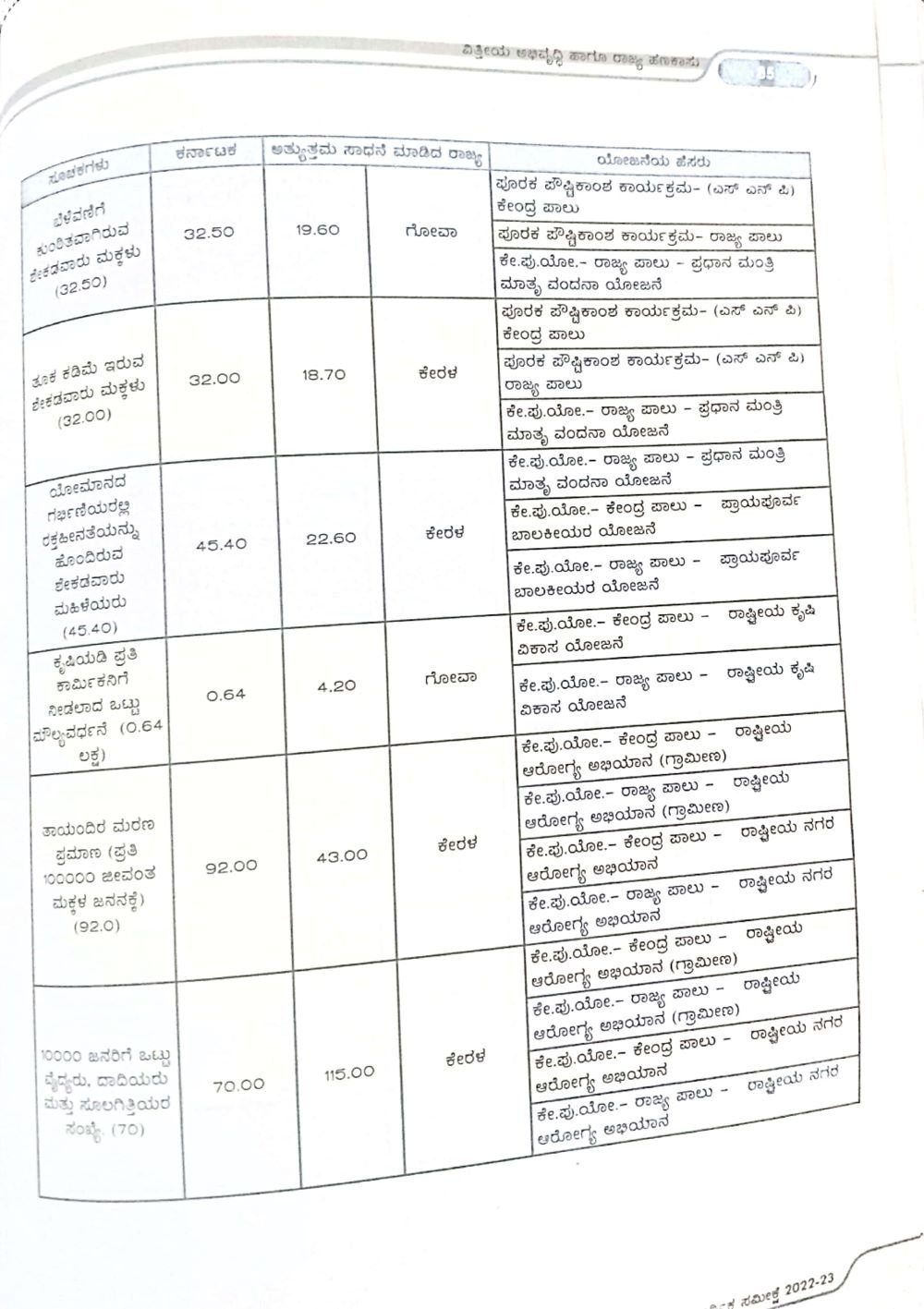 ಕೇರಳ, ಗೋವಾ, ತಮಿಳುನಾಡು, ಆಂಧ್ರಪ್ರದೇಶ, ತೆಲಂಗಾಣ, ಅರುಣಾಚಲ ಪ್ರದೇಶ, ಛತ್ತೀಸ್ ಘಡ್, ಹಿಮಾಚಲ ಪ್ರದೇಶ,ಗುಜರಾತ್, ಜಮ್ಮು ಕಾಶ್ಮೀರ್, ಪಶ್ಚಿಮಬಂಗಾಳ, ಮಧ್ಯ ಪ್ರದೇಶ, ರಾಜಸ್ಥಾನ, ಹರ್ಯಾಣ, ಮಹಾರಾಷ್ಟ್ರ ರಾಜ್ಯಗಳು ಈ ವಲಯಗಳಲ್ಲಿ ಉತ್ತಮ ಪ್ರದರ್ಶನ ನೀಡಿದ್ದರೆ, ಕರ್ನಾಟಕವು ಹಿಂದುಳಿದಿದೆ ಎಂದು ಸ್ಪಷ್ಟವಾಗಿ ಉಲ್ಲೇಖಿಸಿದೆ.