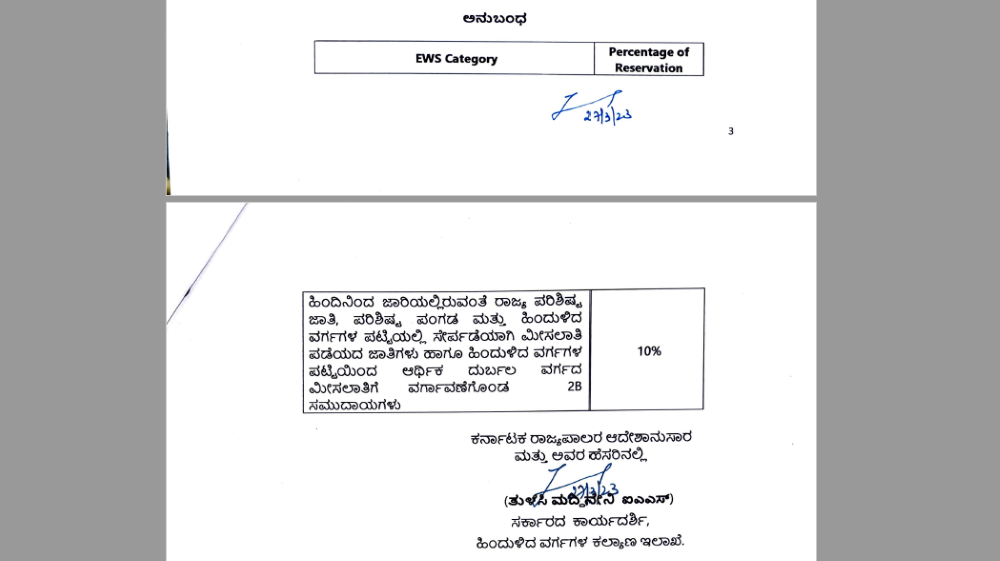 ಮೇಲಾಗಿ ಇಡಬ್ಲ್ಯೂಎಸ್ ಮೀಸಲಾತಿ ಸಂಬಂಧದ ಕಡತವು ಮುಖ್ಯಮಂತ್ರಿ ಬಸವರಾಜ ಬೊಮ್ಮಾಯಿ ಅವರ ಪ್ರಧಾನ ಕಾರ್ಯದರ್ಶಿ ಮಂಜುನಾಥ್ ಪ್ರಸಾದ್ ಅವರ ಬಳಿ ಇತ್ತು ಎಂದು ವಿಶ್ವಸನೀಯ ಮೂಲಗಳು ‘ದಿ ಫೈಲ್’ಗೆ ತಿಳಿಸಿವೆ.