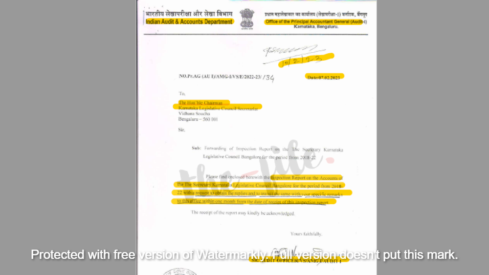 ವಿಧಾನ ಪರಿಷತ್ ಸಚಿವಾಲಯದಲ್ಲಿ ಕಾರ್ಯನಿರ್ವಹಿಸುತ್ತಿರುವ ಹೊರಗುತ್ತಿಗೆ ನೌಕರರಿಗೆ ನಿಯಮಬಾಹಿರವಾಗಿ ಹೆಚ್ಚುವರಿ ವೇತನ ಪಾವತಿಸಿರುವ ಸಂಬಂಧ ಲೆಕ್ಕ ಪರಿಶೋಧಕರು ಕೇಳಿದ್ದ ವಿವರಣೆಗಳನ್ನು ನೀಡಿಲ್ಲ ಎಂದು ಪ್ರಧಾನ ಮಹಾಲೇಖಪಾಲರು ಸಭಾಪತಿ ಬಸವರಾಜ ಹೊರಟ್ಟಿ ಅವರಿಗೆ 2023ರ ಫೆ.7ರಂದು ಪತ್ರ ಬರೆದಿದ್ದಾರೆ. ಈ ಪತ್ರದ ಪ್ರತಿಯು ‘ದಿ ಫೈಲ್’ಗೆ ಲಭ್ಯವಾಗಿದೆ.