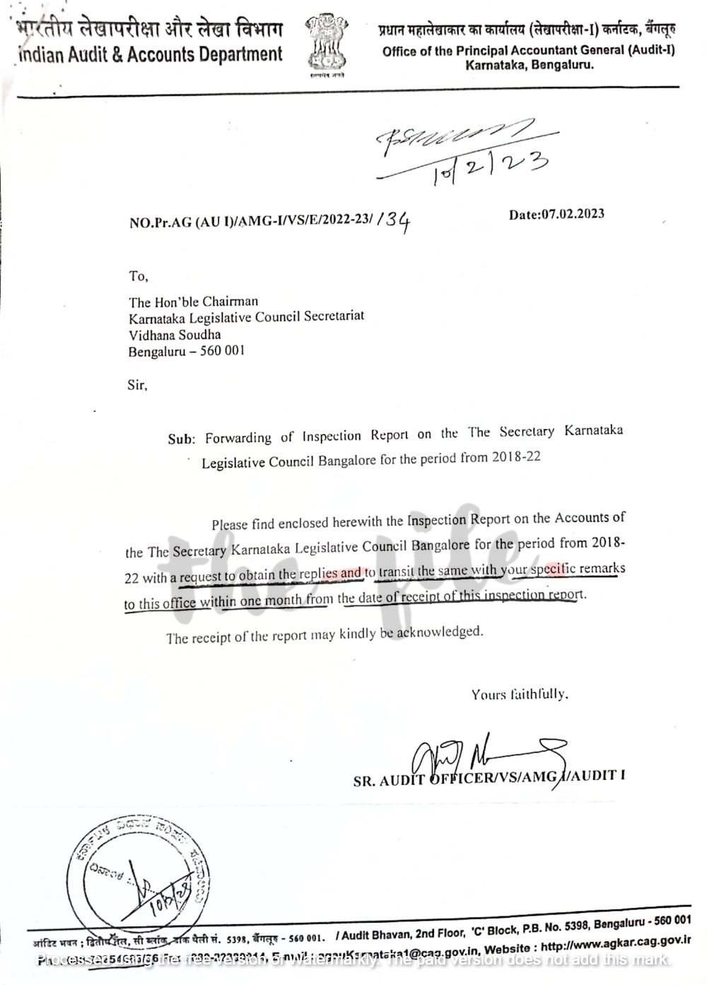 ಕರ್ನಾಟಕ ವಿಧಾನ ಪರಿಷತ್ಗೆ ಸಂಬಂಧಿಸಿದಂತೆ 2018-22ರವರೆಗಿನ ಹಣಕಾಸು ಆಡಳಿತವನ್ನು ತಪಾಸಣೆ ನಡೆಸಿರುವ ಪ್ರಧಾನ ಮಹಾಲೇಖಪಾಲರು ಸಭಾಪತಿ ಬಸವರಾಜ ಹೊರಟ್ಟಿ ಅವರಿಗೆ 2023ರ ಫೆ.7ರಂದು ವರದಿ ಸಲ್ಲಿಸಿದ್ದಾರೆ. ಈ ವರದಿ ಪ್ರತಿ ‘ದಿ ಫೈಲ್’ಗೆ ಲಭ್ಯವಾಗಿದೆ.
