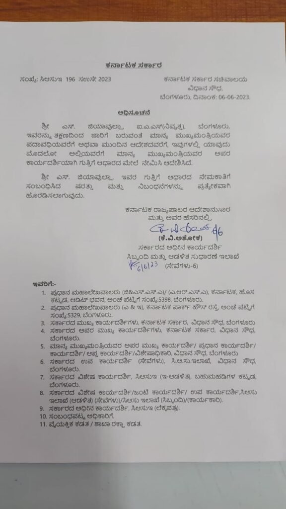 ಬೆಂಗಳೂರು; ಸಣ್ಣಪುಟ್ಟ ಜಾತಿಯವರಿಗೆ ಸಂಪುಟದಲ್ಲಿ ಪ್ರಾತಿನಿಧ್ಯ ನೀಡಿ ಸಾಮಾಜಿಕ ನ್ಯಾಯ ನೀತಿಯನ್ನು ಪಾಲಿಸಿರುವ ಮುಖ್ಯಮಂತ್ರಿ ಸಿದ್ದರಾಮಯ್ಯ ಅವರು ಅಲ್ಪಸಂಖ್ಯಾತ ಸಮುದಾಯದ ಅಧಿಕಾರಿ, ನೌಕರರನ್ನು ಮುಖ್ಯಮಂತ್ರಿಗಳ ಸಚಿವಾಲಯದಿಂದಲೇ ದೂರ ಇಟ್ಟಿದ್ದಾರೆ ಎಂದು ‘ದಿ ಫೈಲ್’ ವರದಿ ಬೆನ್ನಲ್ಲೇ ಇದೀಗ ನಿವೃತ್ತ ಐಎಎಸ್ ಅಧಿಕಾರಿ ಎಸ್ ಜಿಯಾವುಲ್ಲಾ ಅವರನ್ನು ಮುಖ್ಯಮಂತ್ರಿಗಳ ಅಪರ ಕಾರ್ಯದರ್ಶಿಯನ್ನಾಗಿ ನೇಮಿಸಲಾಗಿದೆ. ಈ ಸಂಬಂಧ 2023ರ ಜೂನ್ 6ರಂದು ಆದೇಶ ಹೊರಡಿಸಿದೆ.
