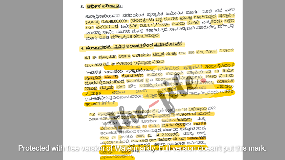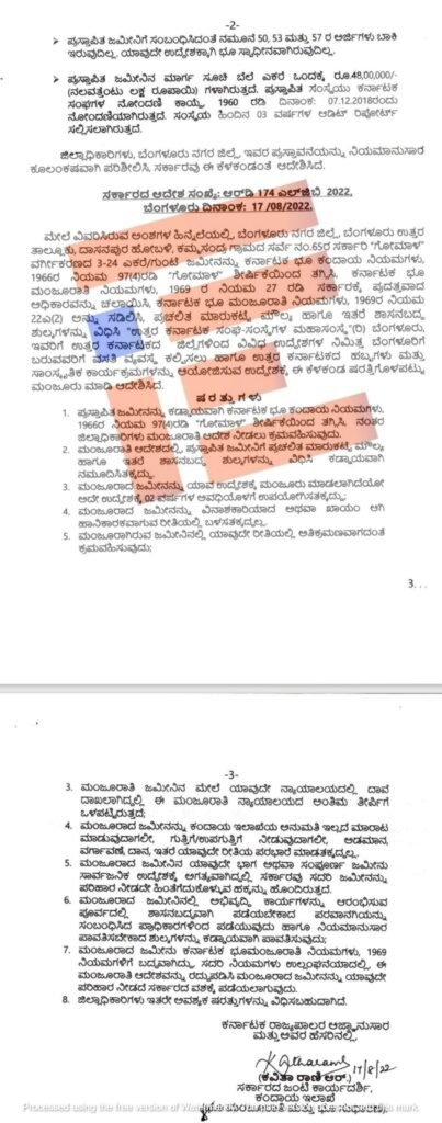 ಜಮೀನಿಗೆ ಮಾರುಕಟ್ಟೆ ಮೌಲ್ಯದ ಶೇ.25ರಷ್ಟು ಮೌಲ್ಯ ನಿಗದಿಗೊಳಿಸಿ 2023ರ ಮಾರ್ಚ್‌ 27ರಂದು ಆದೇಶವನ್ನೂ ಹೊರಡಿಸಿತ್ತು.