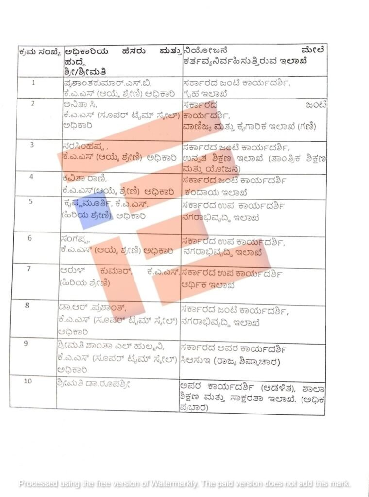 ಈ ಪೈಕಿ ವೀರಭದ್ರ ಹಂಚಿನಾಳ್‌ ಅವರು ಸಚಿವ ಬೋಸರಾಜ್‌ ಅವರಿಗೆ ಆಪ್ತ ಕಾರ್ಯದರ್ಶಿಯಾಗಿ ನಿಯೋಜನೆಗೊಂಡಿದ್ದಾರೆ. ಇವರ ಬದಲಿಗೆ ಅಪರ ಕಾರ್ಯದರ್ಶಿಯಾಗಿ ವರ್ಗಾವಣೆಗೊಂಡಿರುವ ಶಾಂತ ಎಲ್‌ ಹುಲ್ಮನಿ, ಶಾಲಾ ಶಿಕ್ಷಣ ಮತ್ತು ಸಾಕ್ಷರತಾ ಇಲಾಖೆಗೆ ಅಪರ ಕಾರ್ಯದರ್ಶಿಯಾಗಿ ವರ್ಗಾವಣೆಗೊಂಡಿರುವ ಡಾ ರೂಪಶ್ರೀ ಅವರೂ ಸೇರಿದಂತೆ ಒಟ್ಟಾರೆ 10 ಮಂದಿ ಸಚಿವಾಲಯದಲ್ಲಿ ಕಾರ್ಯನಿರ್ವಹಿಸುತ್ತಿರುವುದು ಗೊತ್ತಾಗಿದೆ.