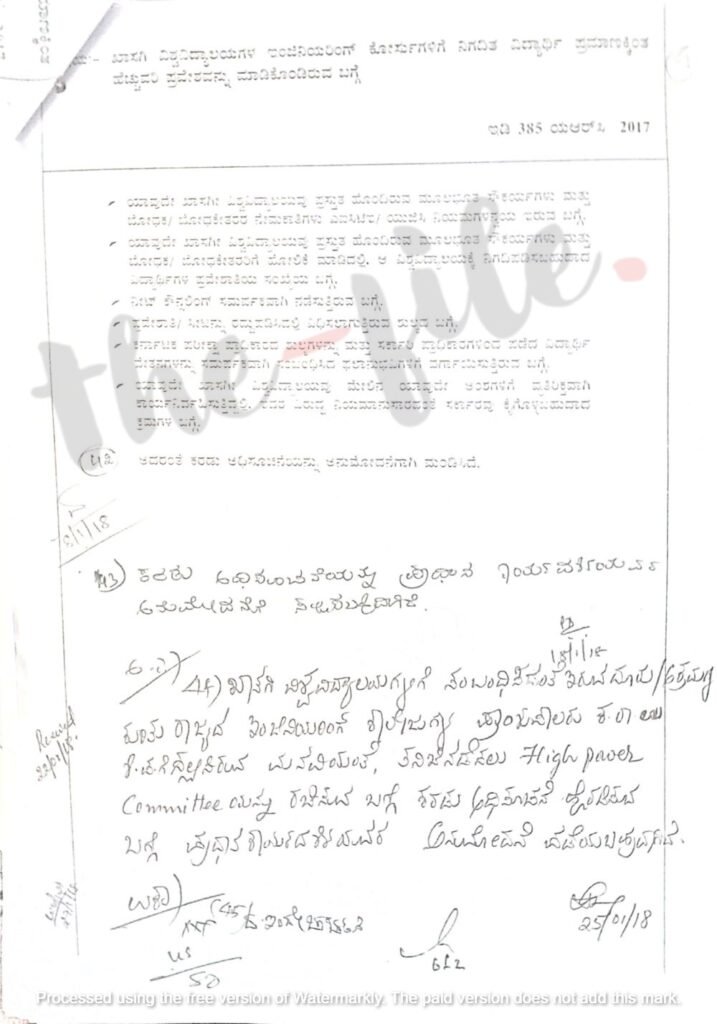 ಖಾಸಗಿ ವಿಶ್ವವಿದ್ಯಾಲಯಗಳಿಗೆ ಸಂಬಂಧಿಸಿದಂತೆ ಪ್ರಕಟಿಸಿದ್ದ ಅಧಿಸೂಚನೆ ಪ್ರತಿಗಳನ್ನು ಸಂಸದೀಯ ವ್ಯವಹಾರಗಳ ಇಲಾಖೆಗೆ ಕಳಿಸಿಕೊಡಬೇಕು ಎಂದು ಸಂಸದೀಯ ವ್ಯವಹಾರಗಳ ಇಲಾಖೆ 2023ರ ಜೂನ್ 30ರಂದು ಬರೆದಿದ್ದ ಪತ್ರಕ್ಕೆ ಉನ್ನತ ಶಿಕ್ಷಣ ಇಲಾಖೆಯು 2023ರ ಜುಲೈ 17ರಂದು ಬರೆದಿರುವ ಅನಧಿಕೃತ ಟಿಪ್ಪಣಿಯಲ್ಲಿ ಖಾಸಗಿ ವಿಶ್ವವಿದ್ಯಾಲಯಗಳು ಪ್ರಸ್ತಾವನೆ ಸಲ್ಲಿಸಿಲ್ಲ ಎಂಬುದನ್ನು ಉಲ್ಲೇಖಿಸಿದ್ದಾರೆ. ಈ ಪತ್ರದ ಪ್ರತಿಯು ‘ದಿ ಫೈಲ್’ಗೆ ಲಭ್ಯವಾಗಿದೆ.