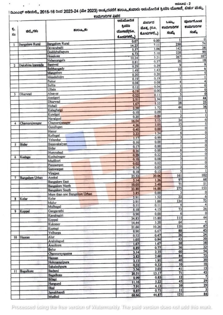 ಕುಡಿಯುವ ನೀರು ಕಾಮಗಾರಿ, ಮಾಲಿನ್ಯ ನಿಯಂತ್ರಣಮಂಡಳಿಲ, ಆರೋಗ್ಯ, ಶಿಕ್ಷಣ, ಮಹಿಳಾ ಮತ್ತು ಮಕ್ಕಳ ಕಲ್ಯಾಣ ಅಭಿವೃದ್ದಿ, ವಿಕಲಚೇತನರ ಕಲ್ಯಾಣ, ಕೌಶಲ್ಯಾಭಿವೃದ್ಧಿ, ಭೌತಿಕ ಮೂಲ ಸೌಕರ್ಯ, ನೀರಾವರಿ, ಇಂಧನ, ಜಲಾನಯನ, ಸೇರಿ ಇನ್ನಿತರೆ ಕಾಮಗಾರಿಗಳೀಗೆ ಈ ಪೈಕಿ 1,885.95 ಕೋಟಿ ರು. ಖರ್ಚಾಗಿದೆ ಎಂದು ತಿಳಿದು ಬಂದಿದೆ.