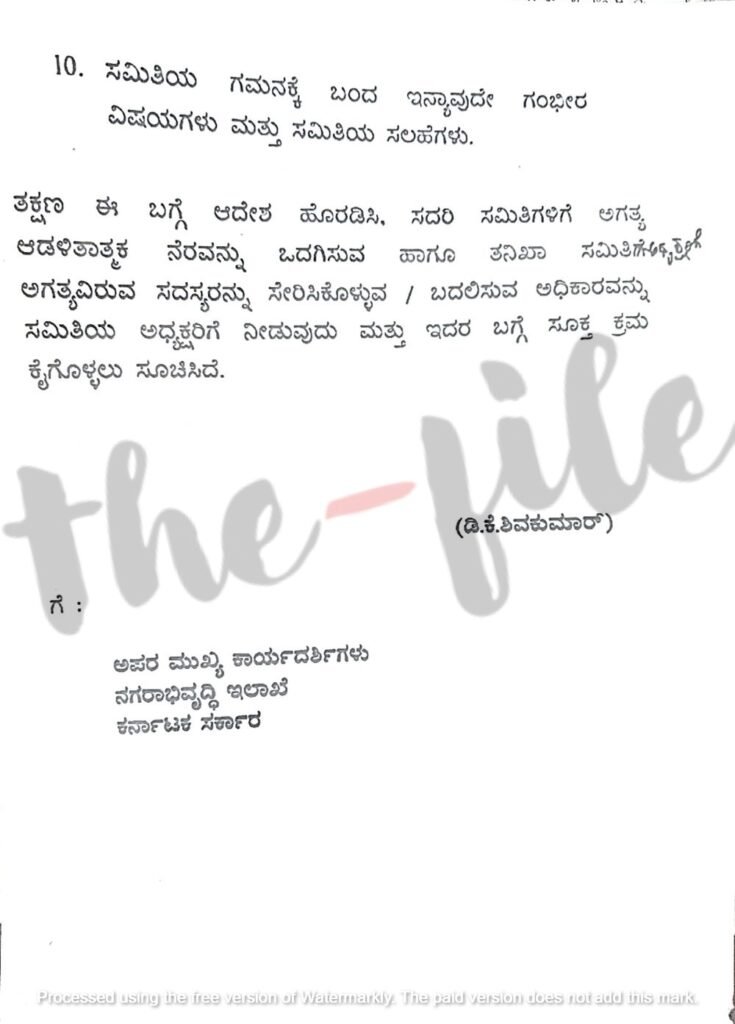 ಐಎಎಸ್‌ ಅಧಿಕಾರಿಗಳಾದ ರಾಜೇಂದರ್‍‌ ಕುಮಾರ್‍‌ ಕಟಾರಿಯಾ, ಹರ್ಷ ಗುಪ್ತ, ಮುನೀಶ್‌ ಮೌದ್ಗಿಲ್‌, ರಶ್ಮಿ ಮಹೇಶ್‌ ಮತ್ತು ವಿಶಾಲ್‌ ಅವರ ಅಧ್ಯಕ್ಷತೆಯಲ್ಲಿ ಸಮಿತಿ ರಚಿಸಬೇಕು ಎಂದು ನಗರಾಭಿವೃದ್ಧಿ ಇಲಾಖೆಯ ಸರ್ಕಾರದ ಹೆಚ್ಚುವರಿ ಮುಖ್ಯ ಕಾರ್ಯದರ್ಶಿ ರಾಕೇಶ್‌ಸಿಂಗ್‌ ಅವರಿಗೆ ಡಿ ಕೆ ಶಿವಕುಮಾರ್‍‌ ಅವರು 2023ರ ಜೂನ್‌ 19ರಂದು ಟಿಪ್ಪಣಿ ಹೊರಡಿಸಿದ್ದರು.