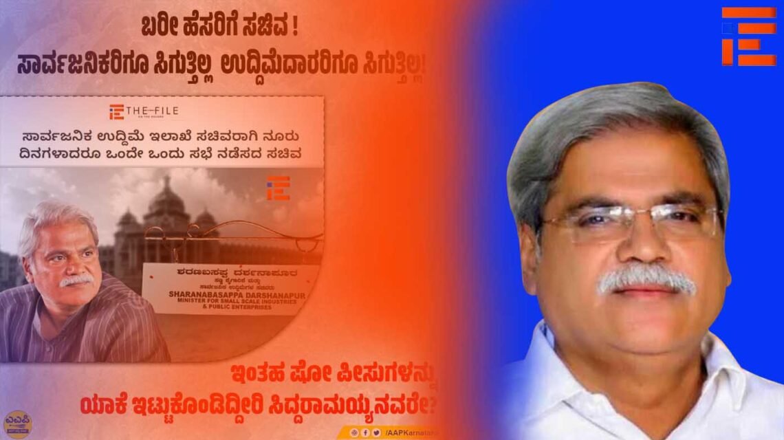 ಸಿದ್ದರಾಮಯ್ಯ ನೇತೃತ್ವದಲ್ಲಿ ಅಧಿಕಾರಕ್ಕೇರಿರುವ  ಕಾಂಗ್ರೆಸ್‌ ಸರ್ಕಾರವು 100 ದಿನಗಳನ್ನು ಪೂರ್ಣಗೊಳಿಲು ಕೆಲವೇ ಕೆಲವು ದಿನಗಳು ಬಾಕಿ ಇರುವ ಹೊತ್ತಿನಲ್ಲಿಯೇ 121  ಸಾರ್ವಜನಿಕ ಉದ್ದಿಮೆಗಳ ನಿರ್ವಹಣೆ ಹೊತ್ತಿರುವ ಸಾರ್ವಜನಿಕ ಉದ್ದಿಮೆಗಳ  ಸಚಿವ ಶರಣಬಸಪ್ಪ ದರ್ಶನಾಪುರ ಅವರು ಈ ನೂರು ದಿನದಲ್ಲಿ ಒಂದೇ ಒಂದು ಸಭೆಯನ್ನು ನಡೆಸಿಲ್ಲ ಎಂದು ‘ದಿ ಫೈಲ್‌’ ದಾಖಲೆ ಸಹಿತ ಬಹಿರಂಗಪಡಿಸಿತ್ತು.