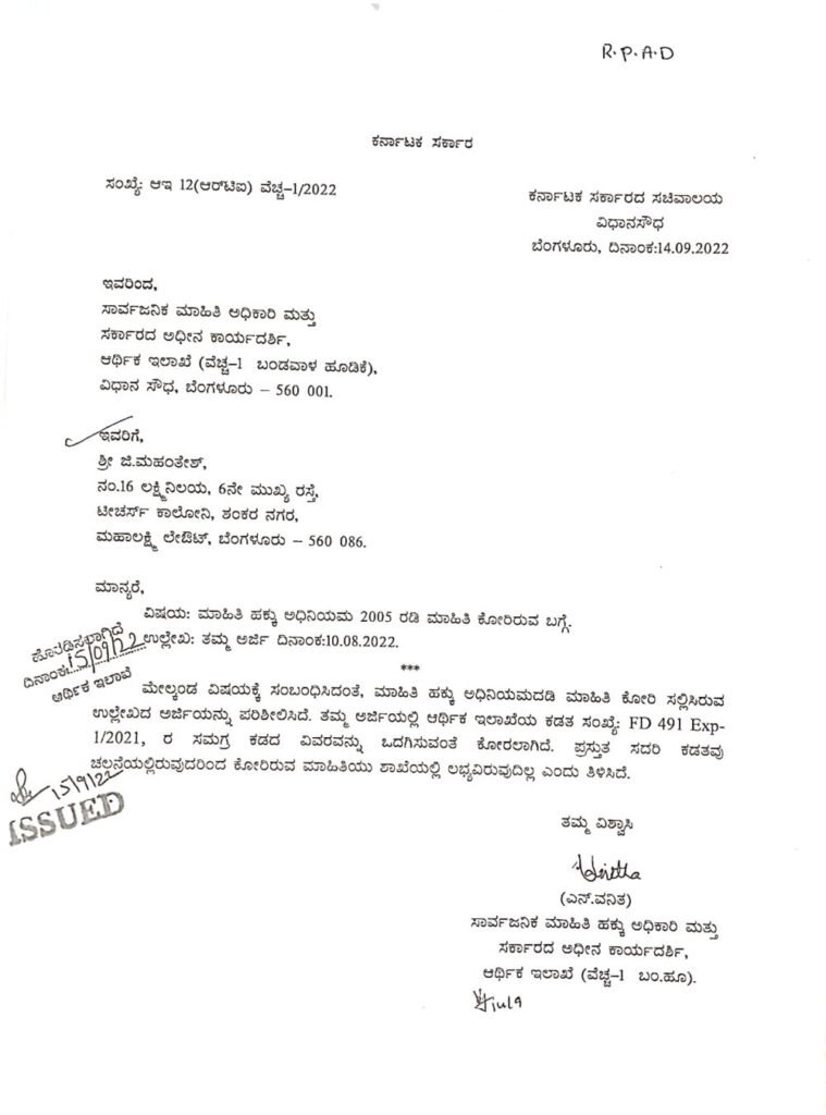 ಈ ಕುರಿತು ‘ದಿ ಫೈಲ್’ 2022ರ ಆಗಸ್ಟ್ 10ರಂದೇ ಆರ್ಟಿಐ ಅಡಿಯಲ್ಲಿ ಕಡತಕ್ಕಾಗಿ ಆರ್ಟಿಐ ಅಡಿಯಲ್ಲಿ ಅರ್ಜಿ ಸಲ್ಲಿಸಿತ್ತು.